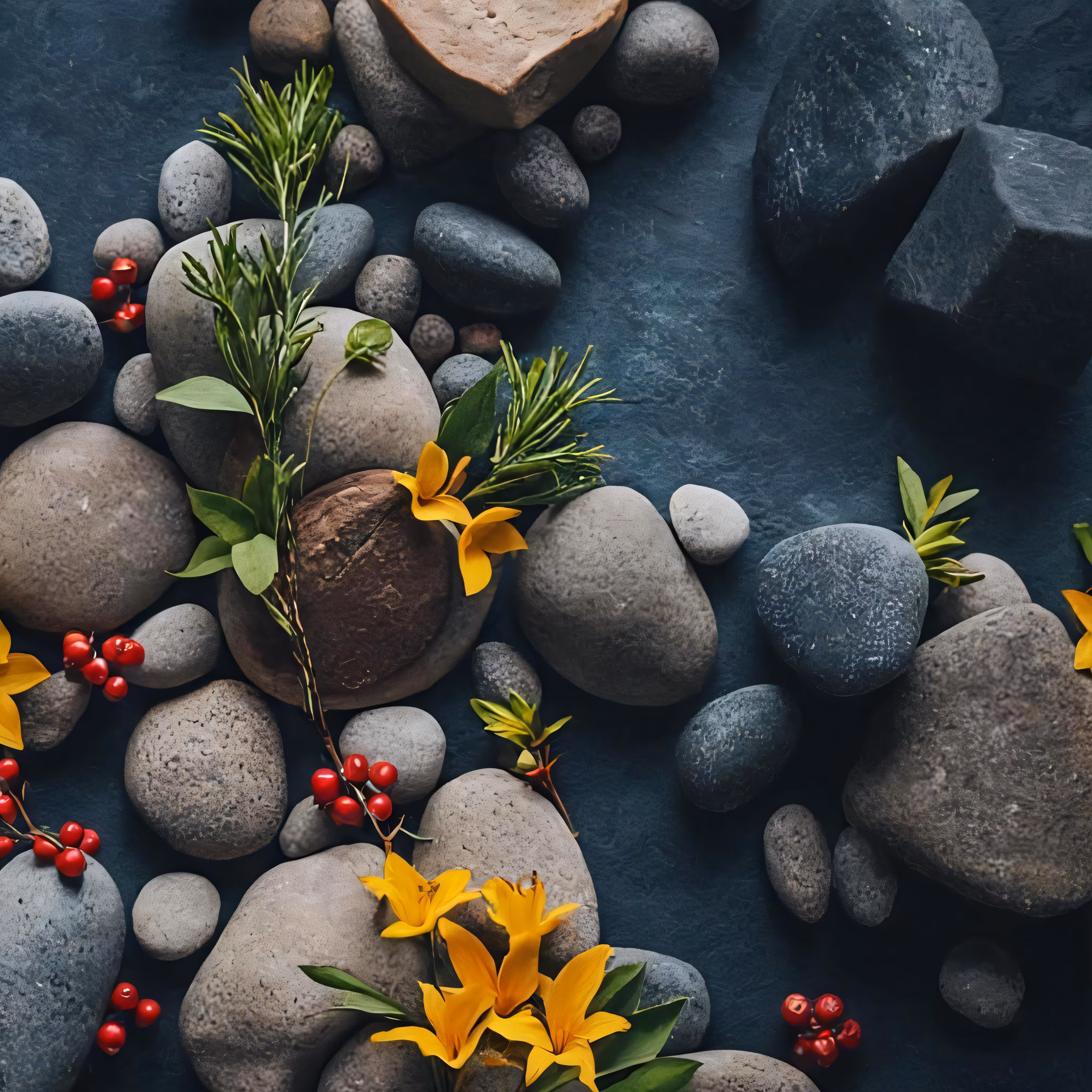 High resolution picture, free to use, some flowers and leaves laying out on the rocks