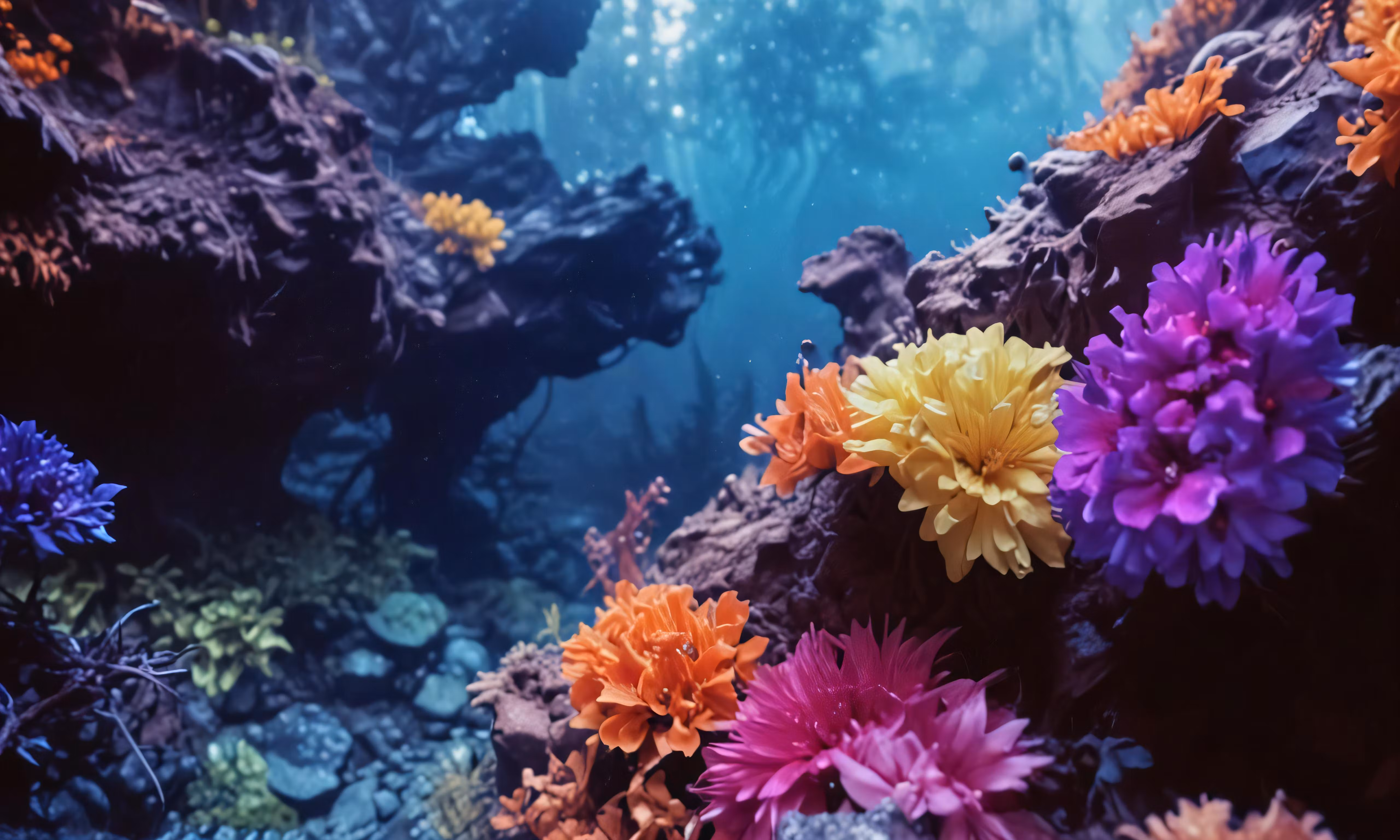 High resolution picture, free to use, some flowers growing from the rocks under water