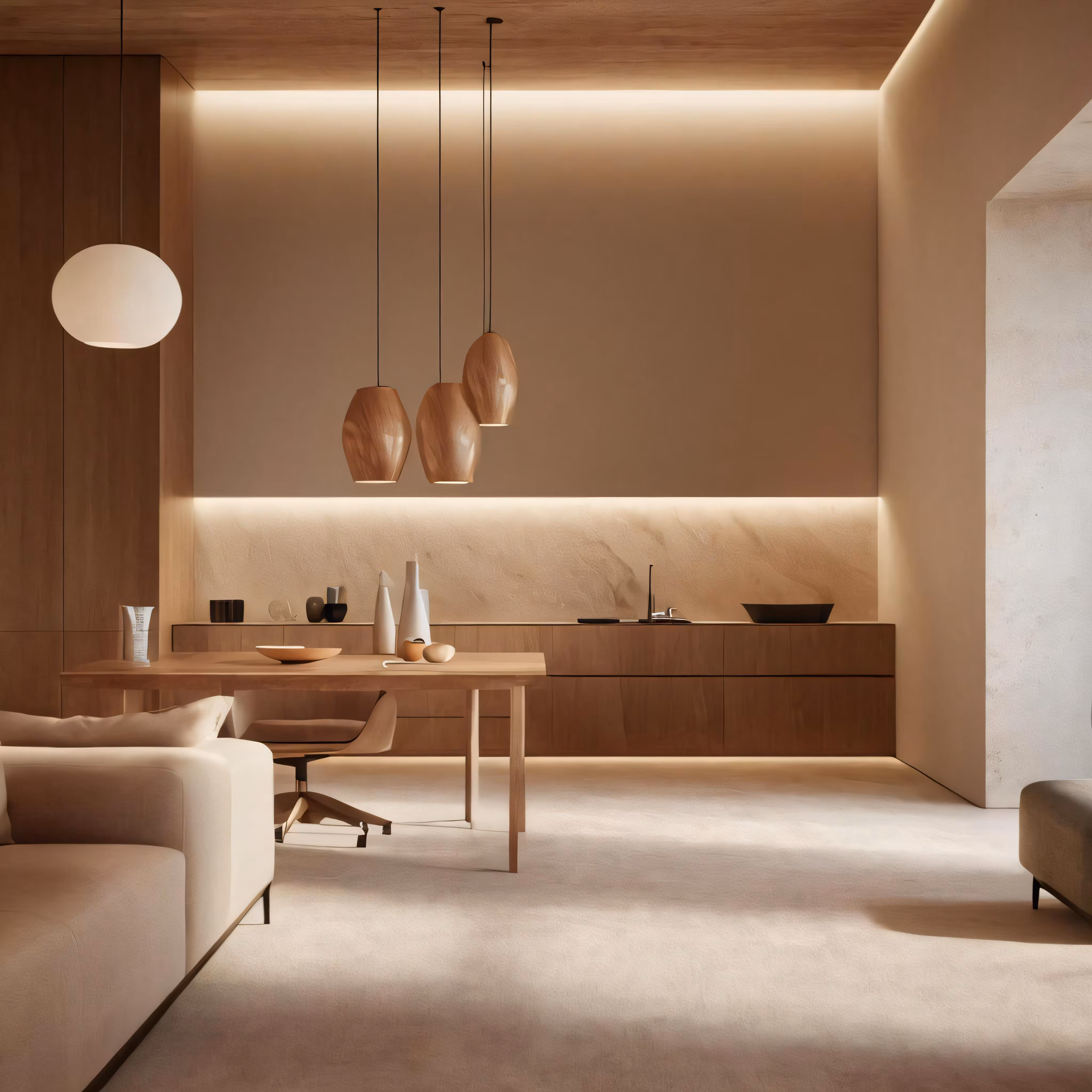 High resolution picture, free to use, some lights on overhead in a spacious living room