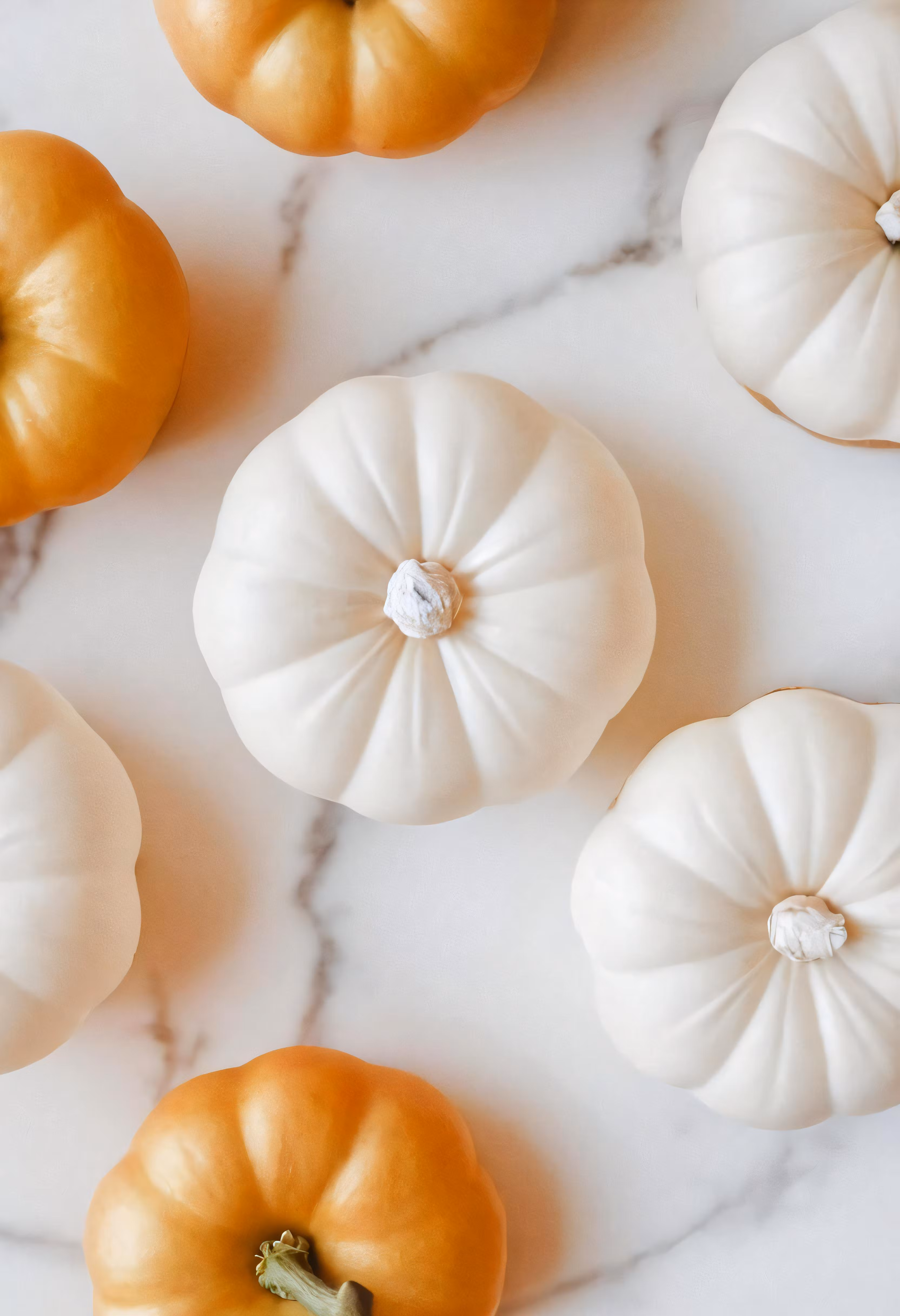 High resolution picture, free to use, some mini white pumpkins sitting next to some other small ones