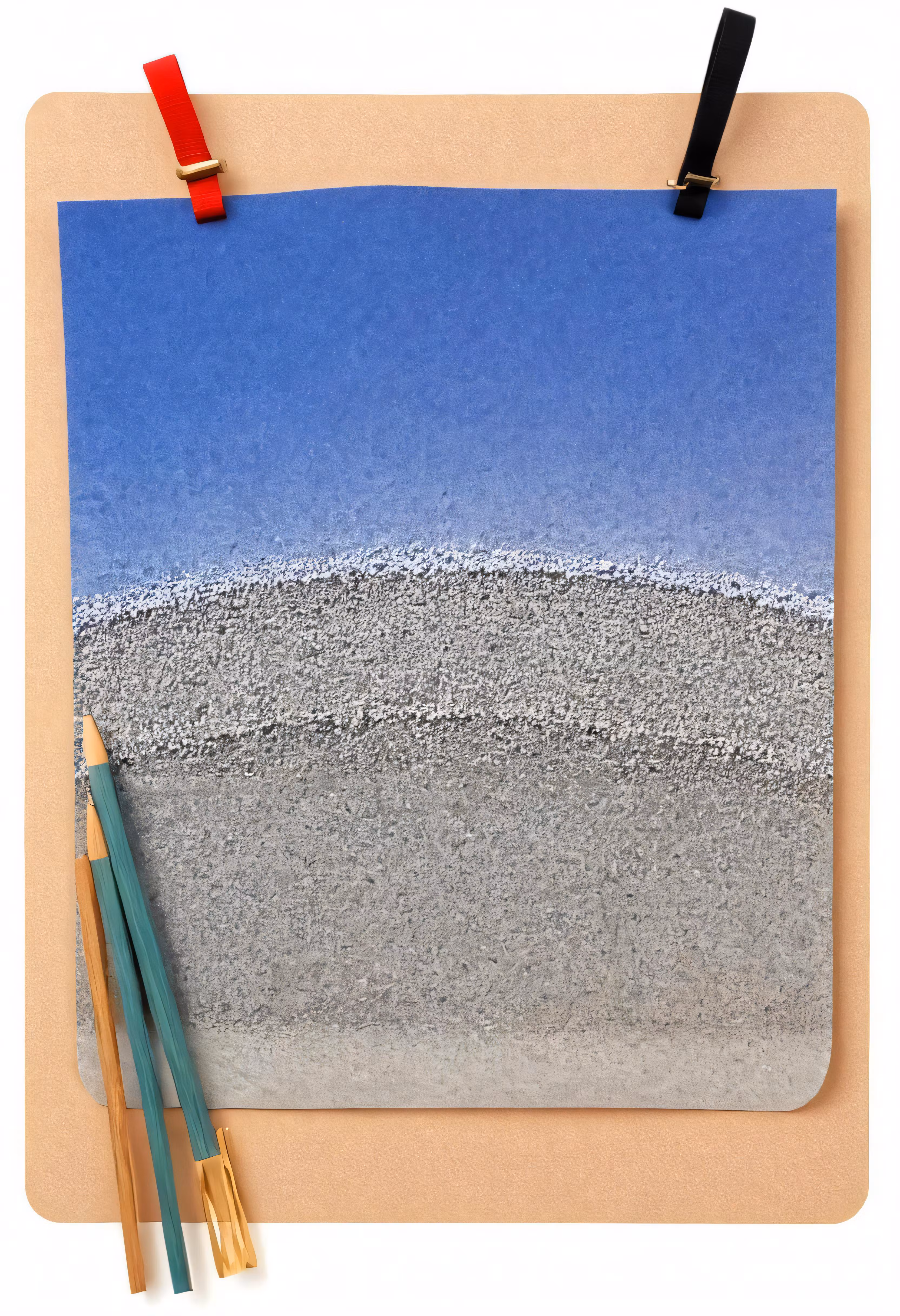 High resolution picture, free to use, some pencils and markers are sitting on a board with a painting on it