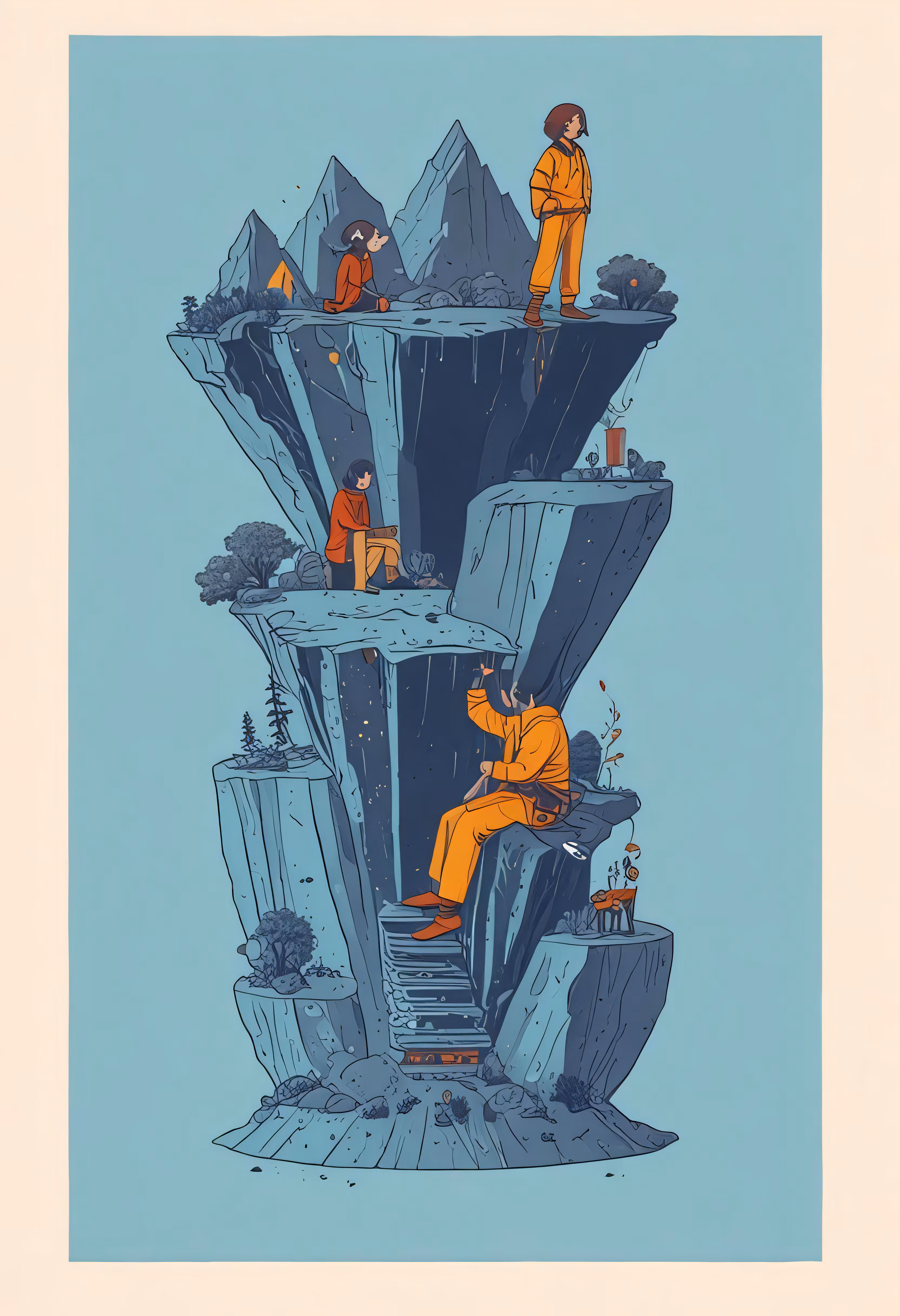 High resolution picture, free to use, some people standing on some stairs and mountains