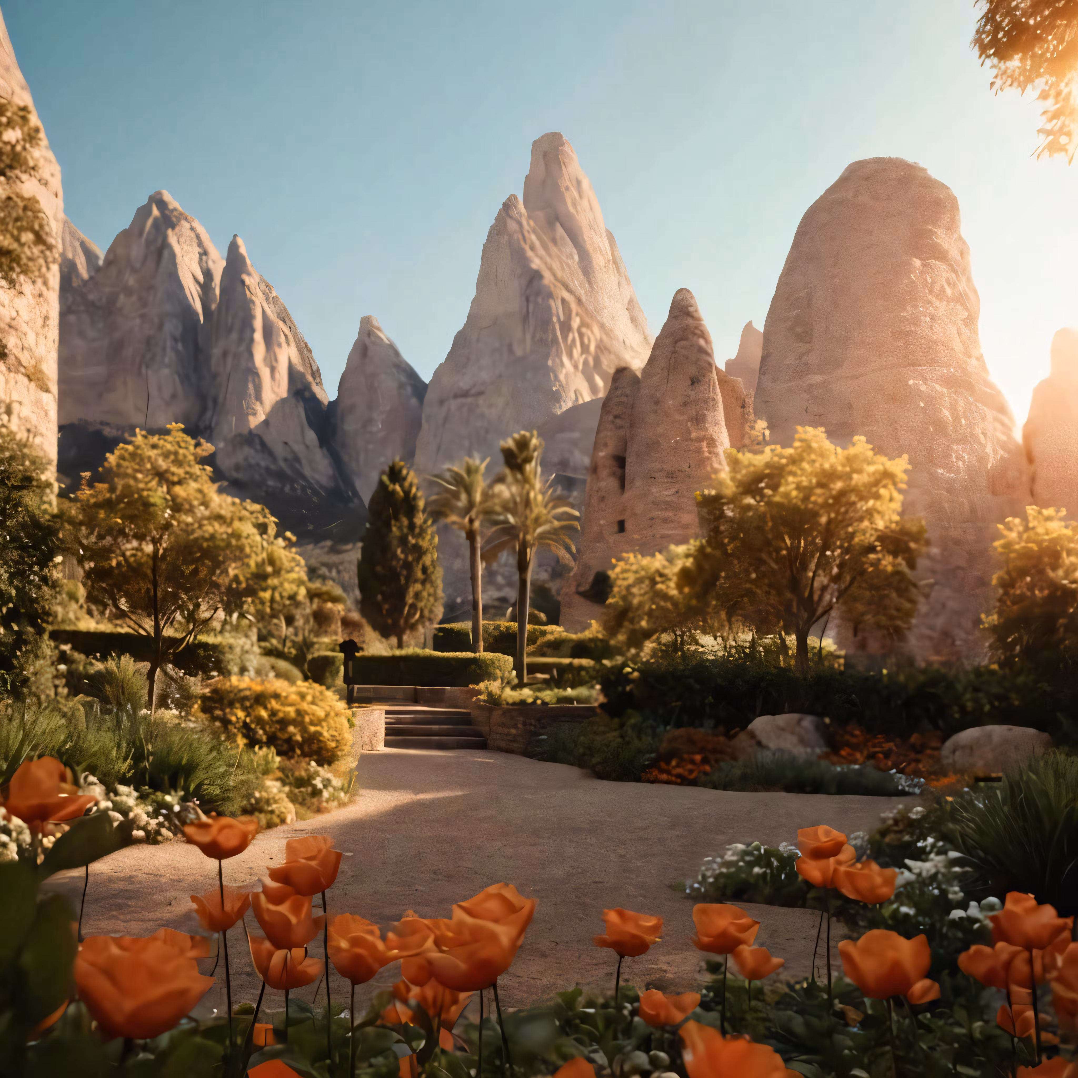High resolution picture, free to use, some pretty flowers and trees near rocks