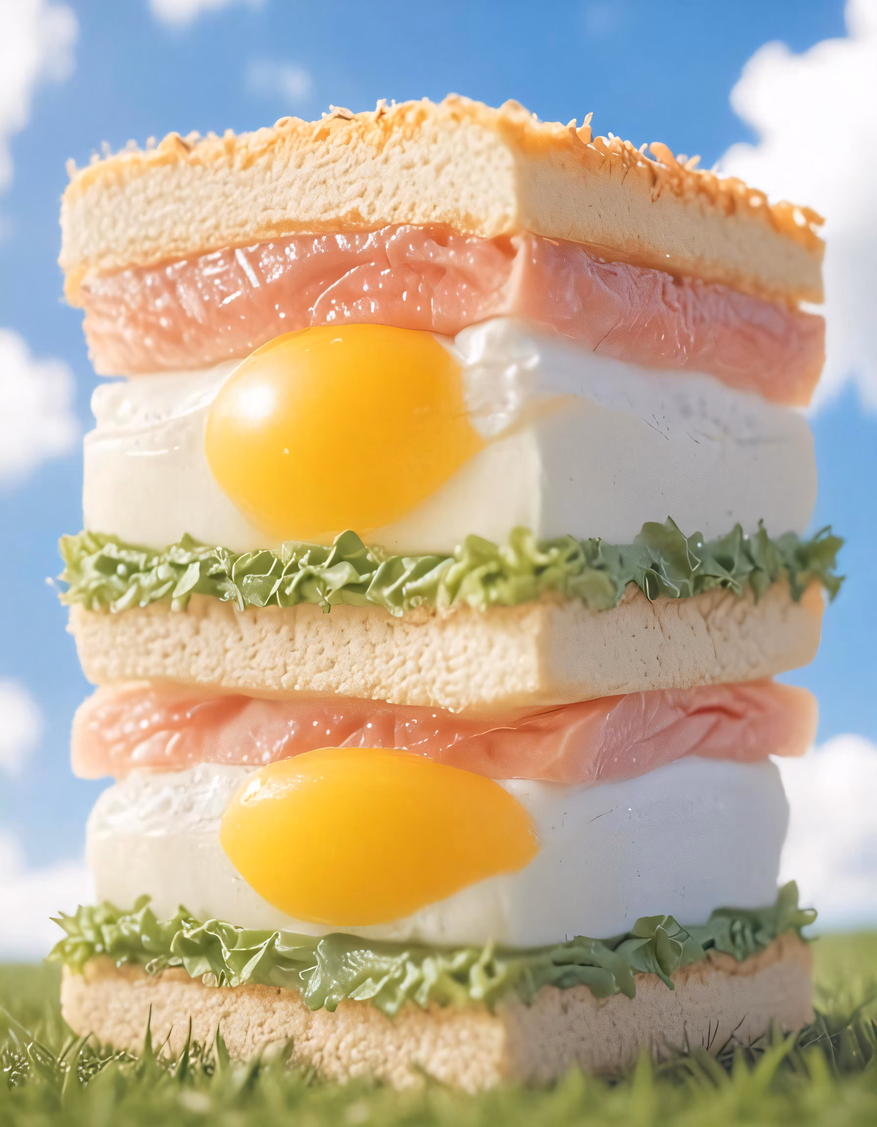 High resolution picture, free to use, some sandwiches made from eggs and bacon are stacked on top of each other