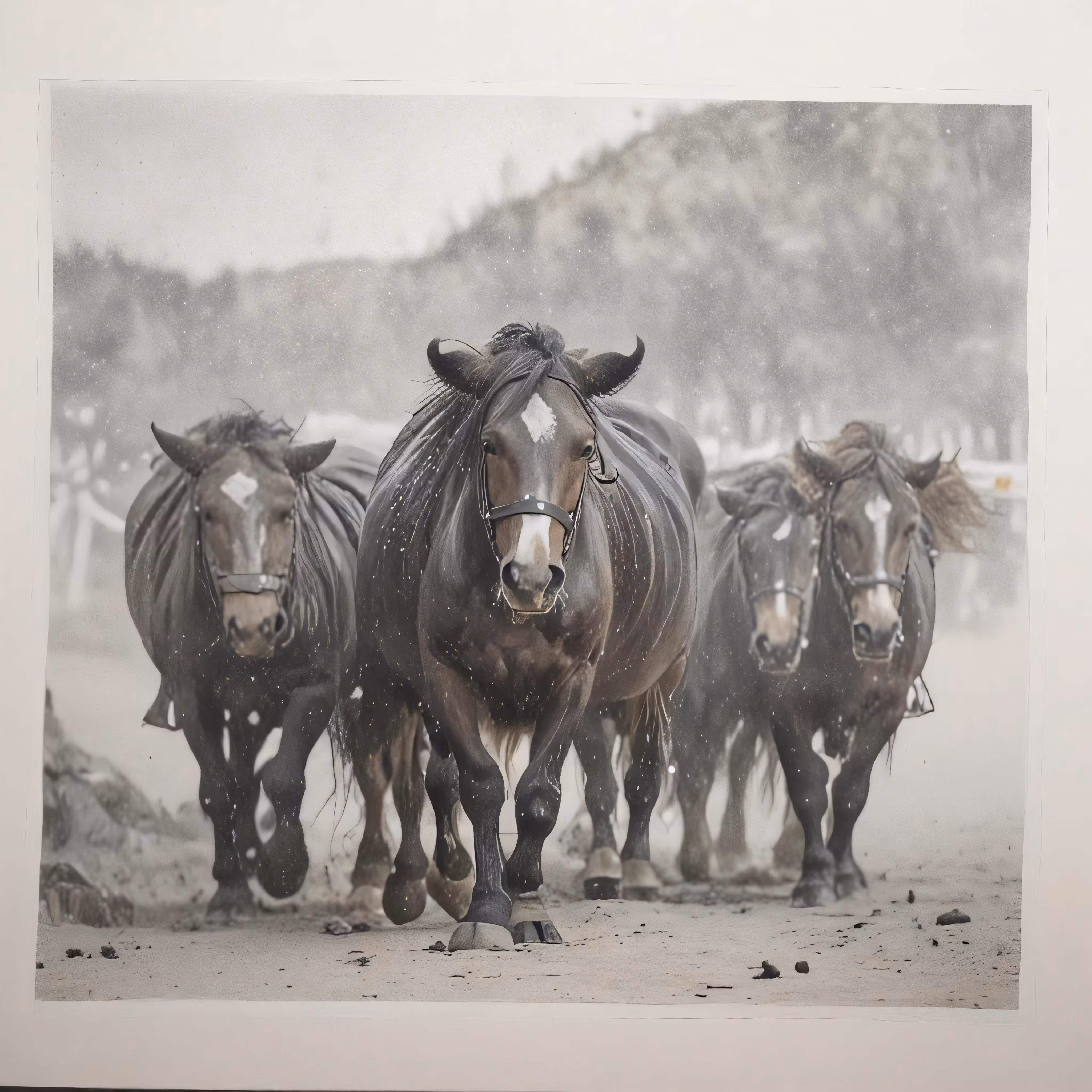 High resolution picture, free to use, some very pretty horses walking on a snowy day