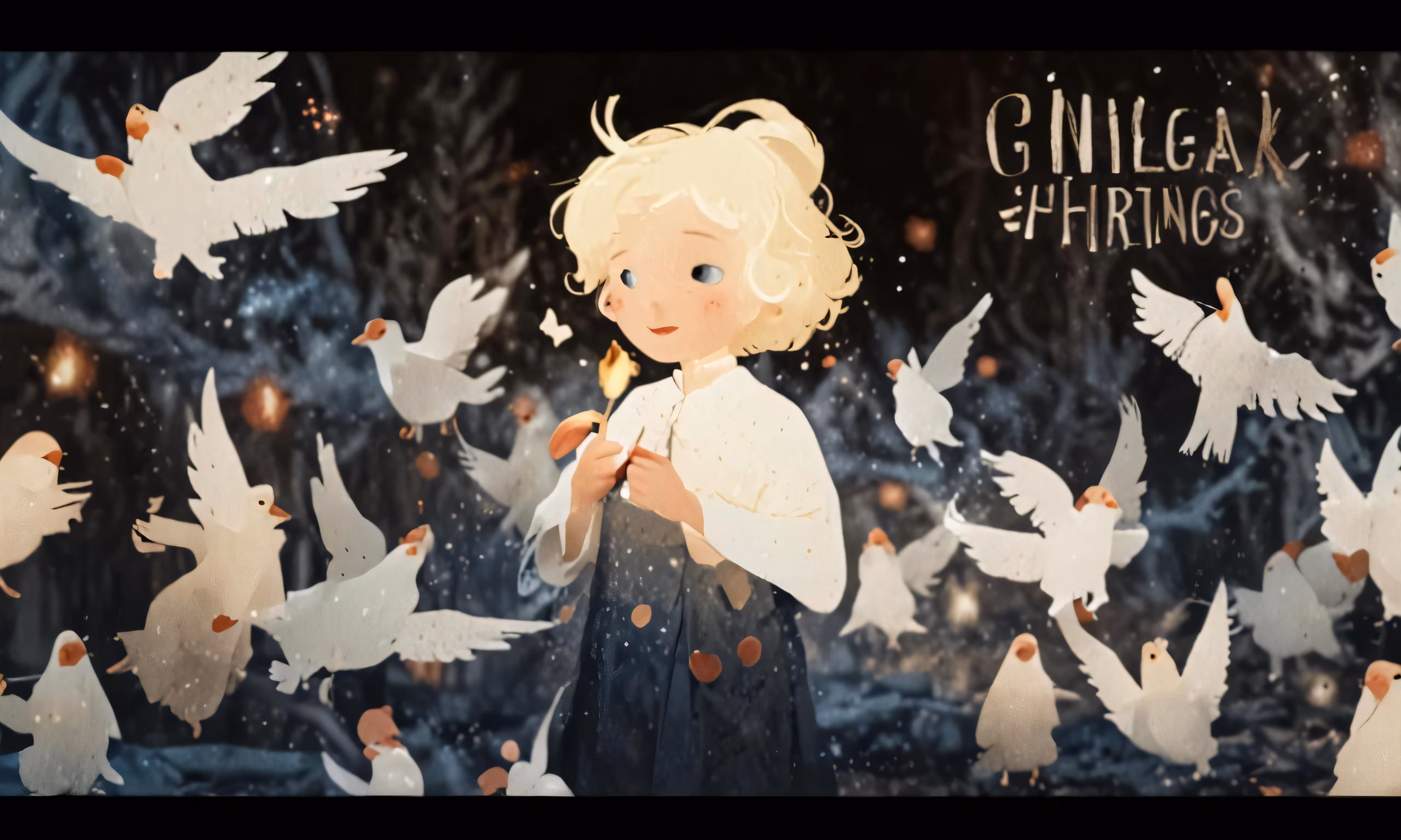 High resolution picture, free to use, some white birds a girl and trees and some stars