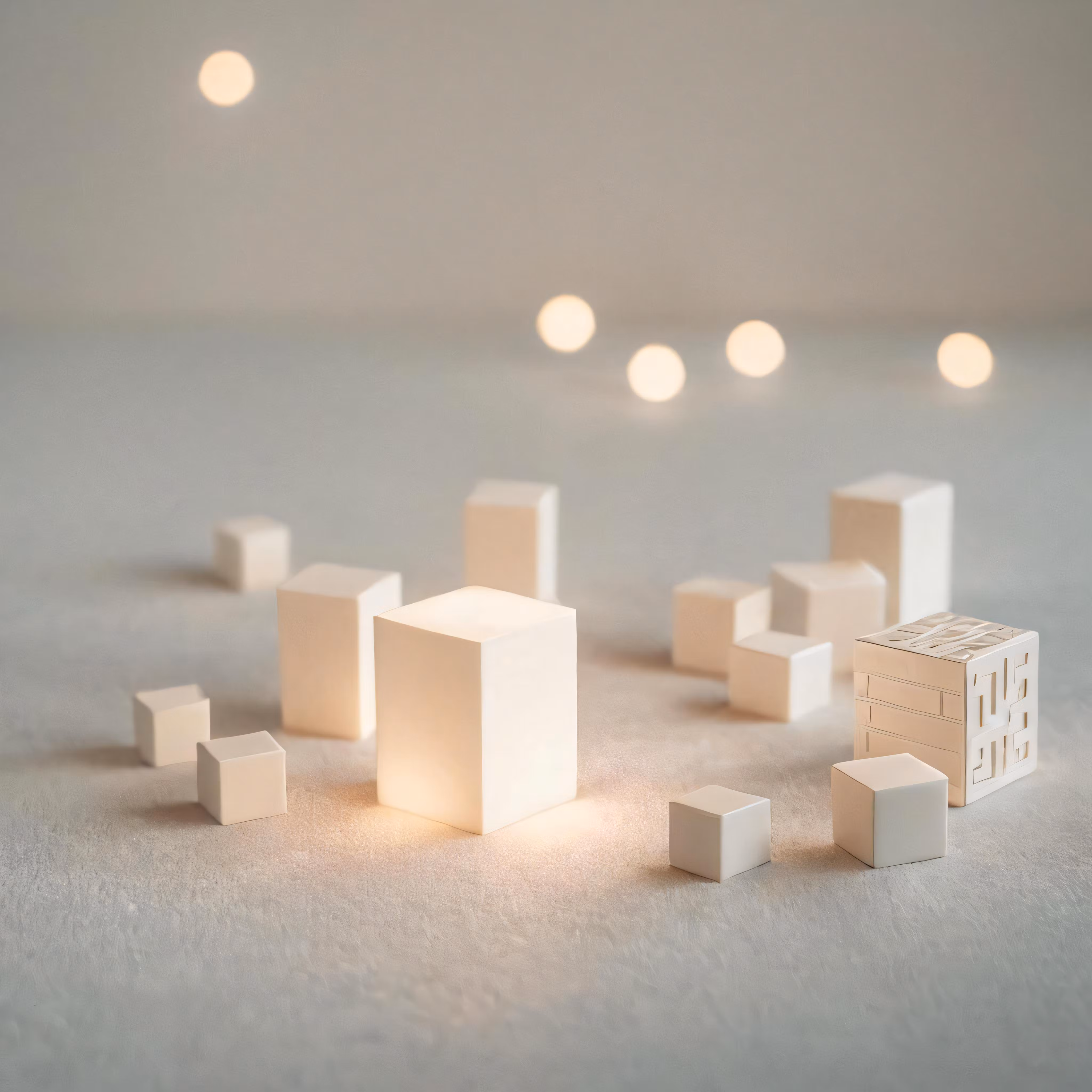 High resolution picture, free to use, some white blocks sitting on top of a table