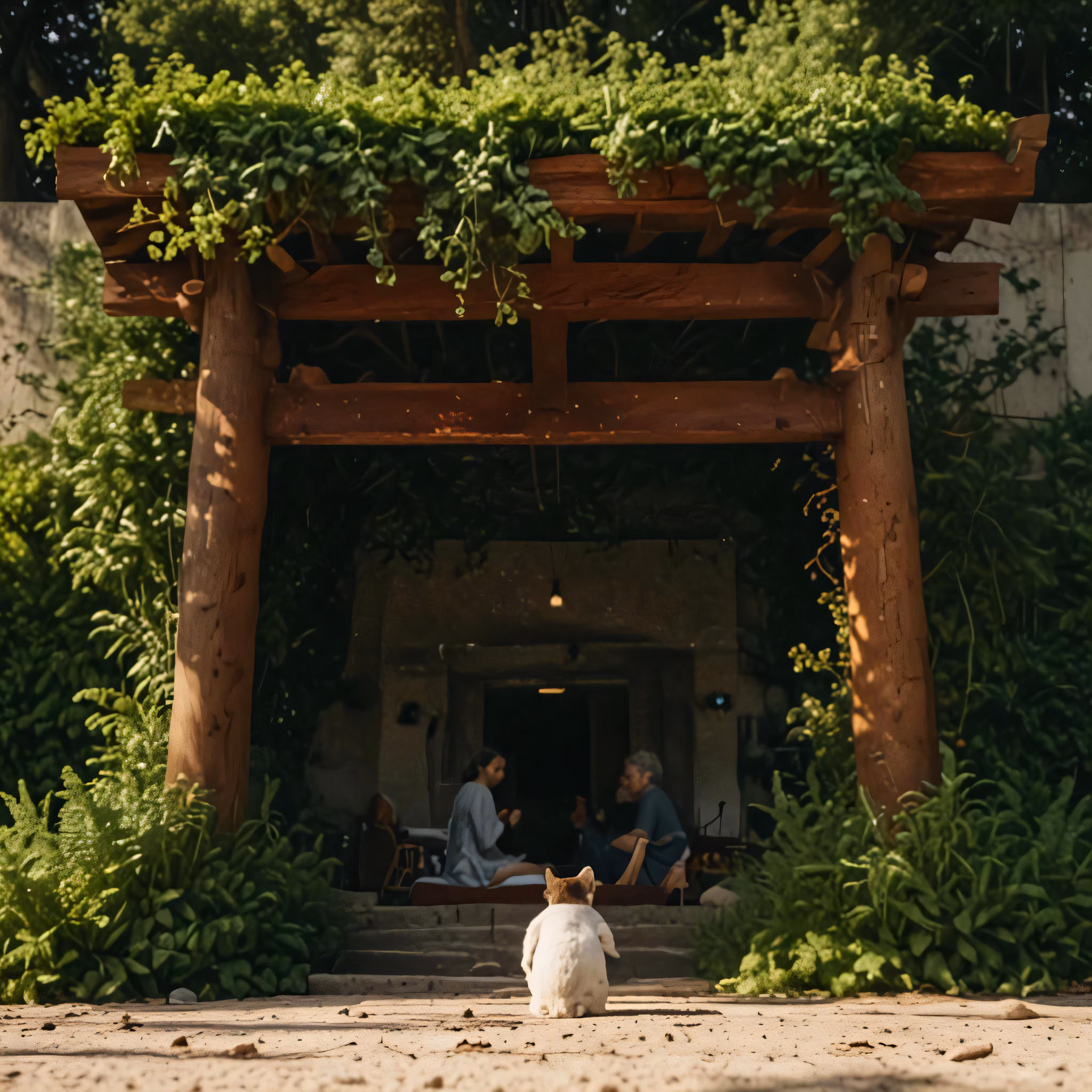 High resolution picture, free to use, some white dog sitting in the sand at the end of a walkway
