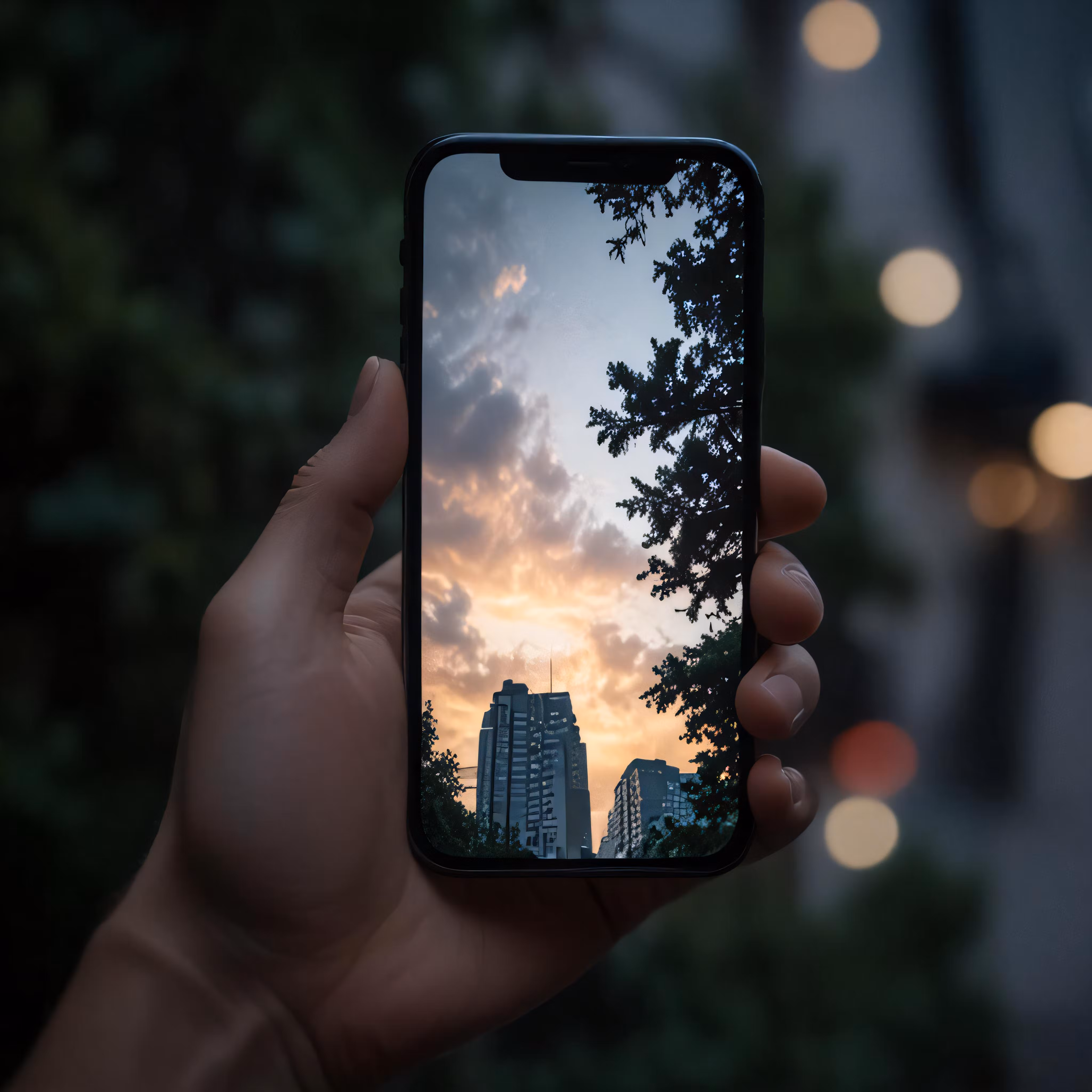 High resolution picture, free to use, someone holds up their phone with a sky in the background