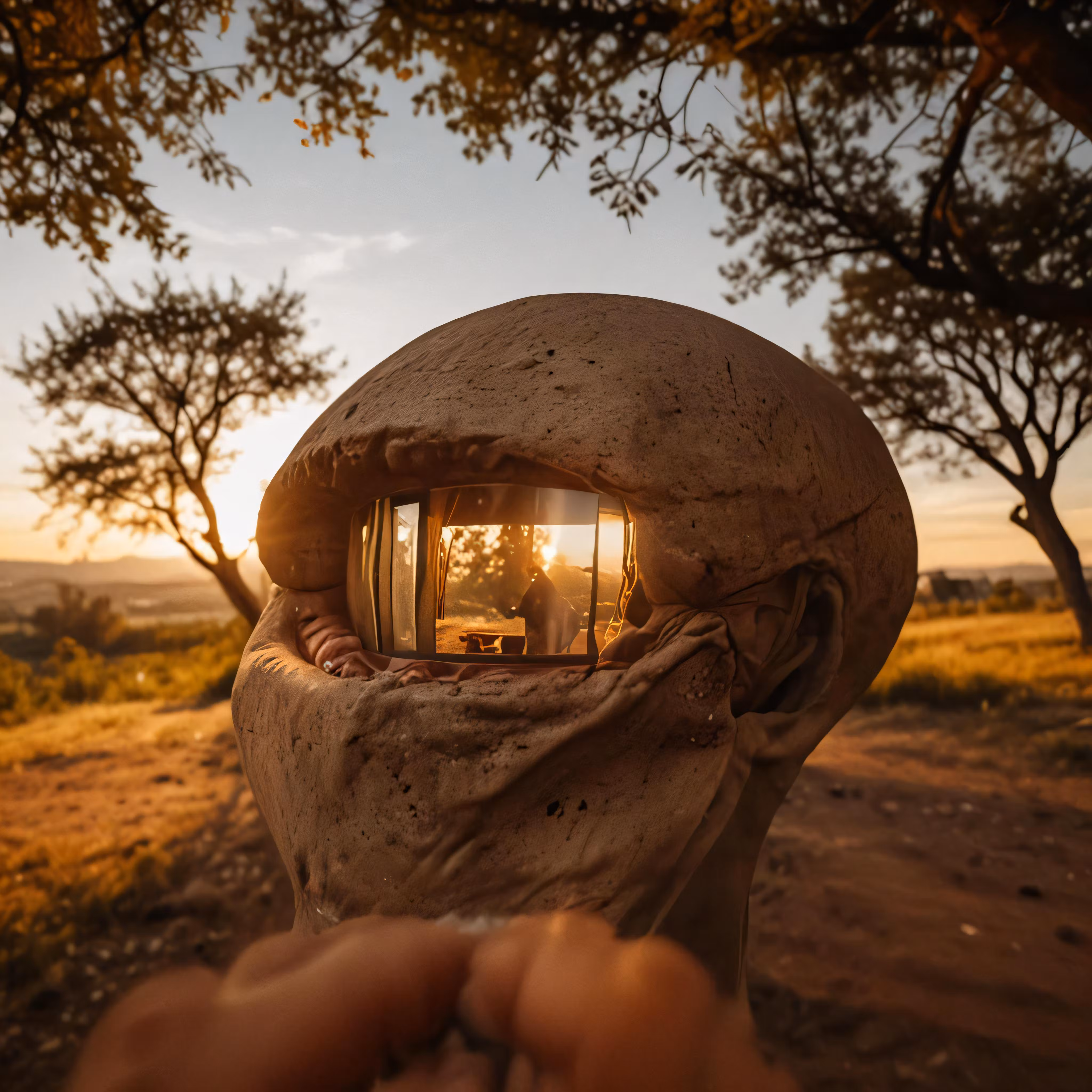 High resolution picture, free to use, someone taking a photograph of their home in the rock