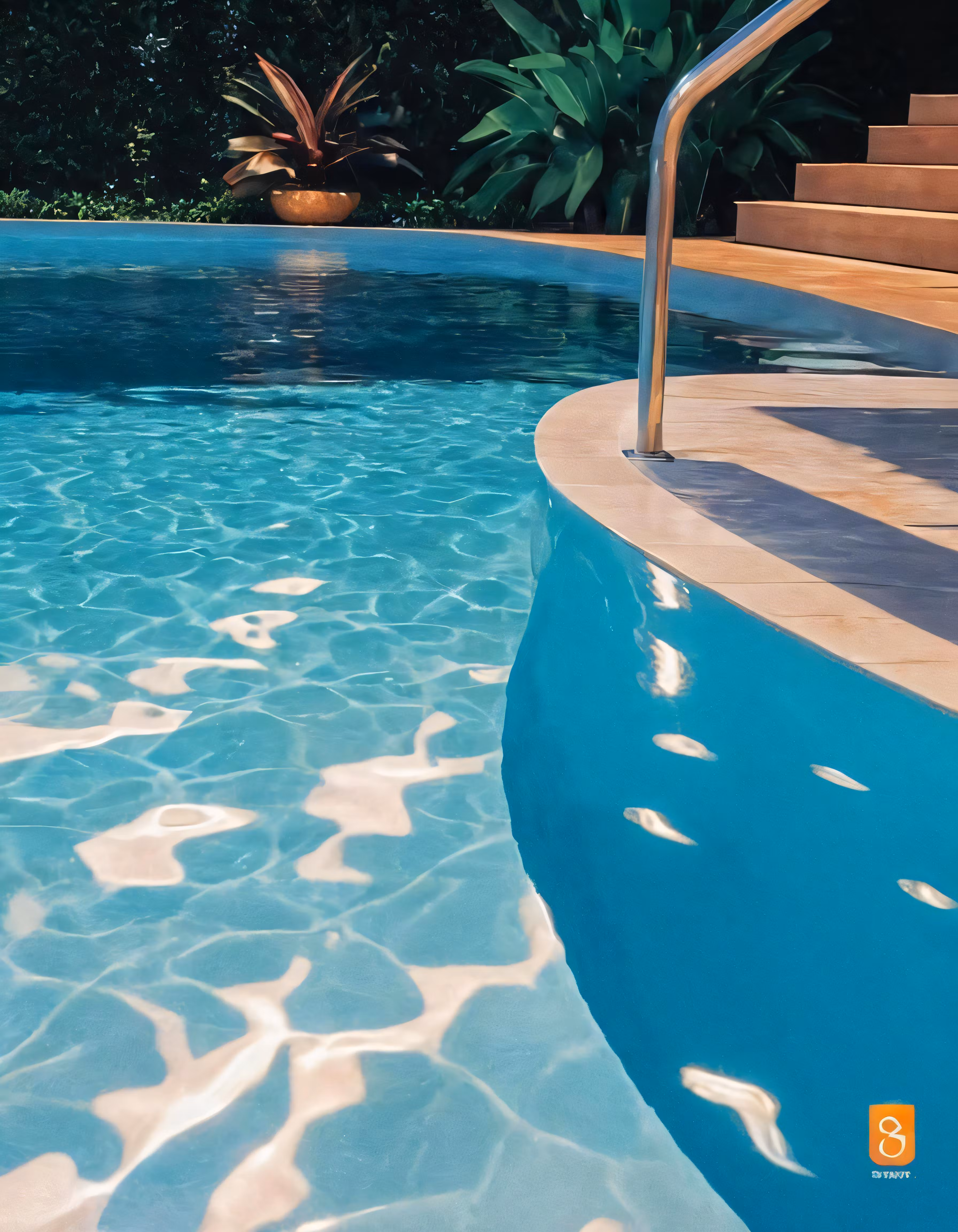 High resolution picture, free to use, swimming pool surrounded by green plants and water