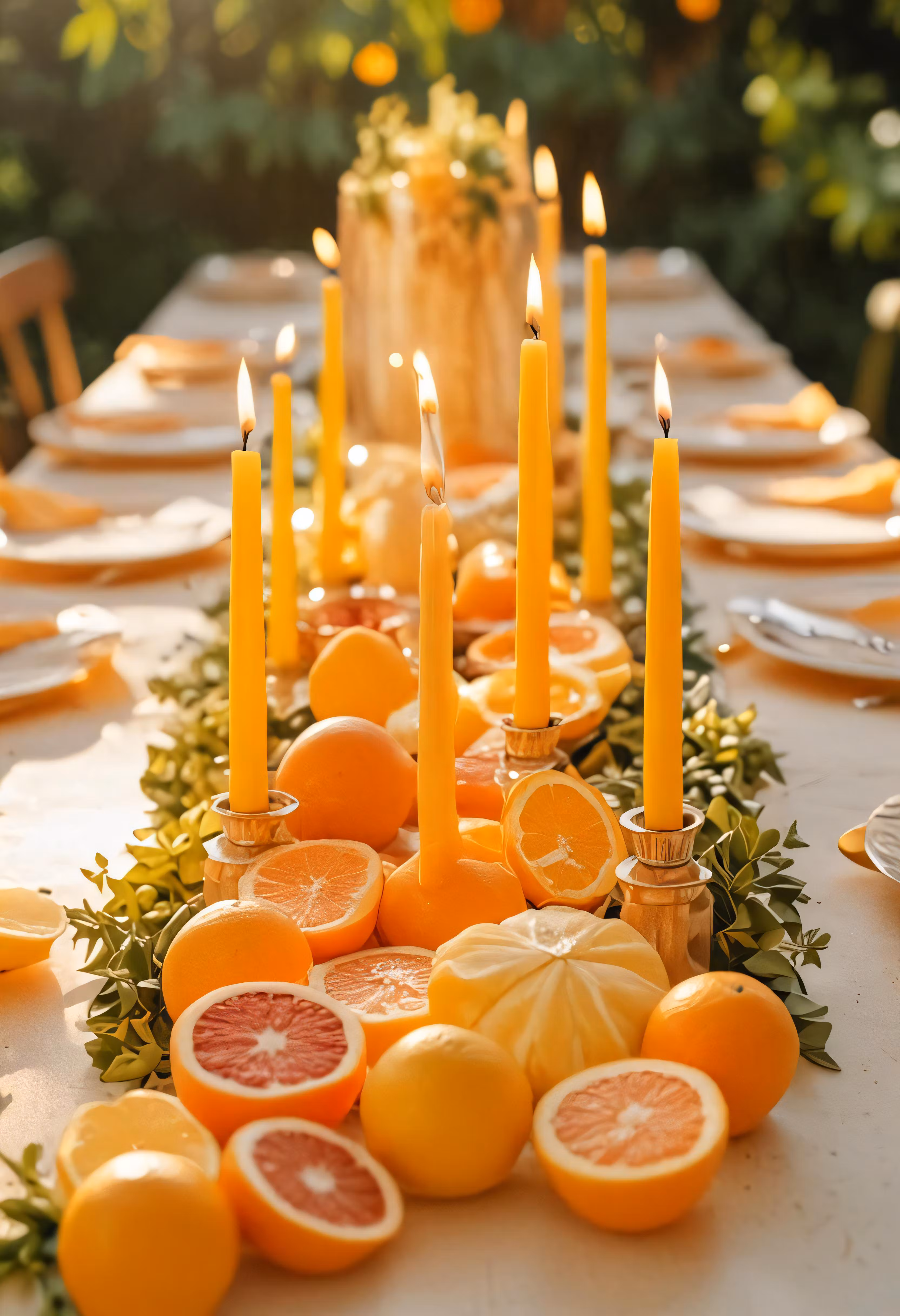 High resolution picture, free to use, table with candles, sliced oranges and citrus fruits