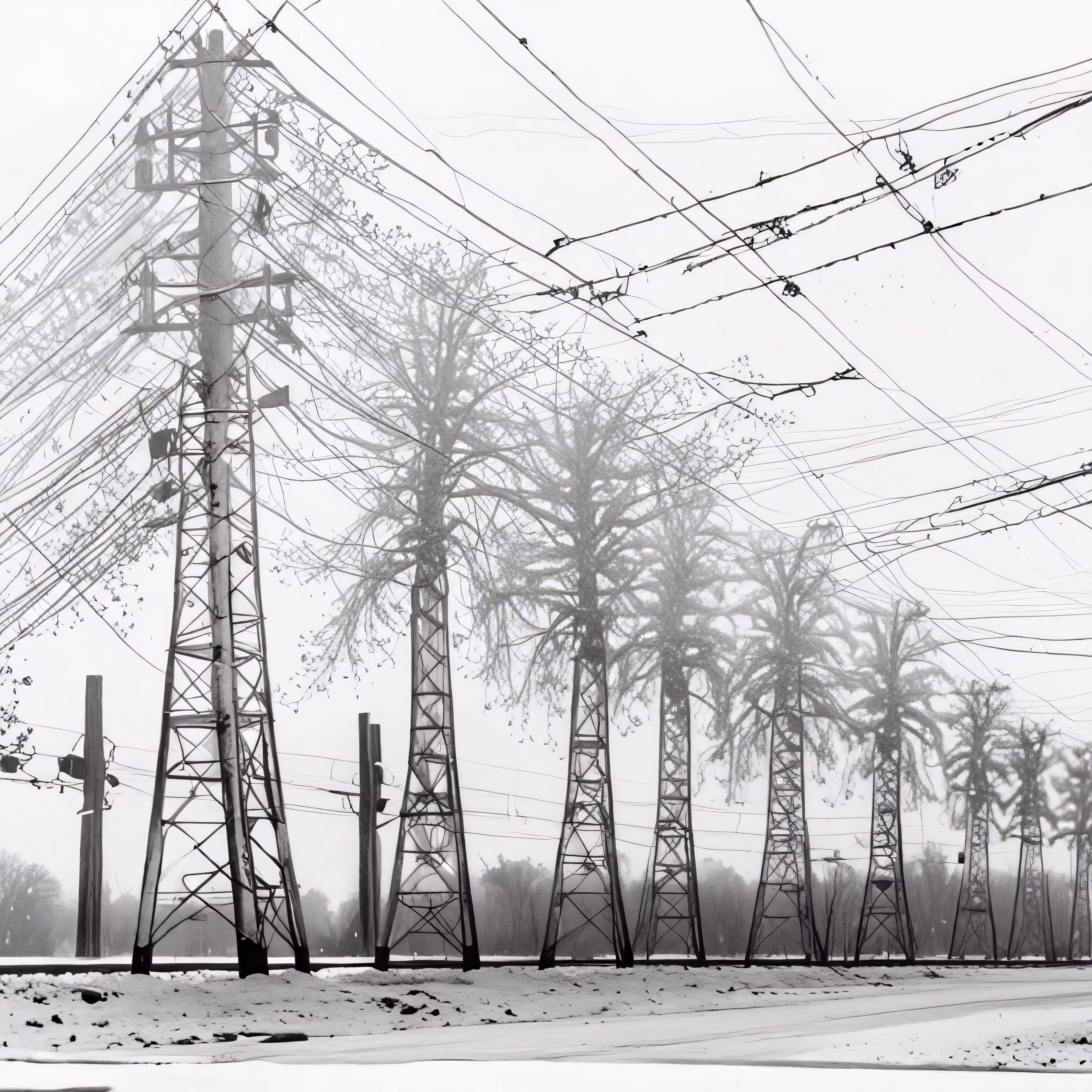 High resolution picture, free to use, telephone poles in a black and white scene