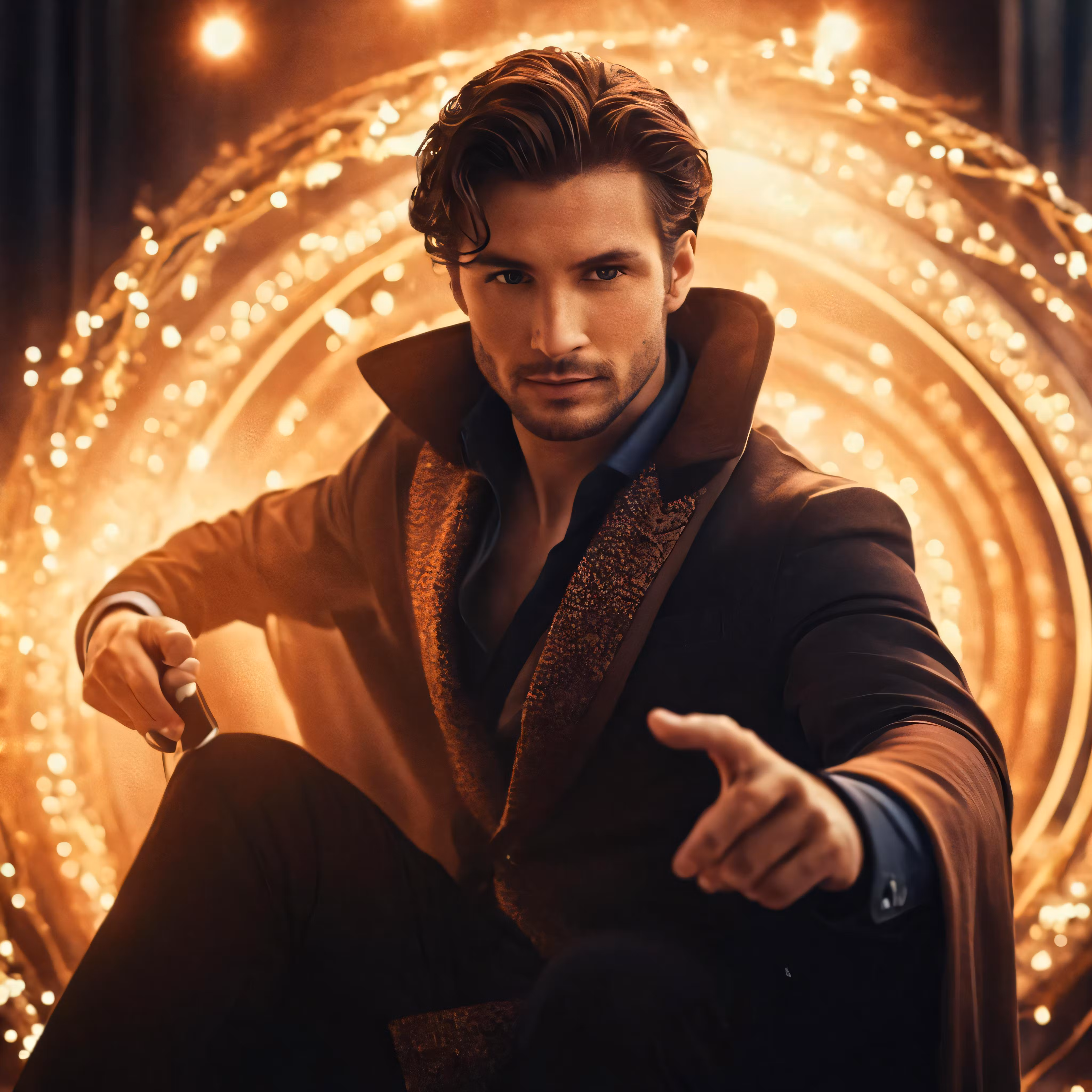 High resolution picture, free to use, the actor in a black suit is posing for the camera