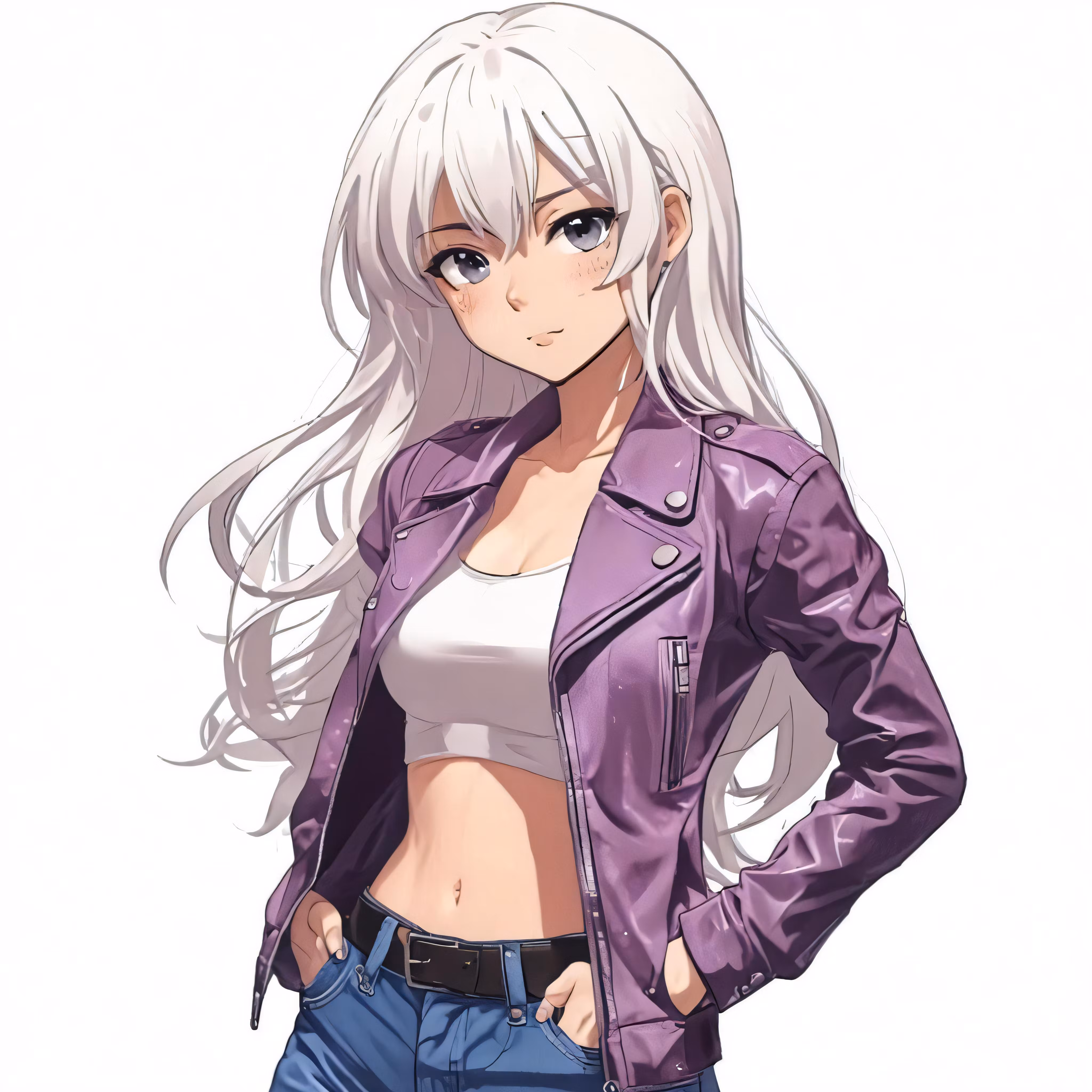 High resolution picture, free to use, the anime girl with long white hair stands next to her purse