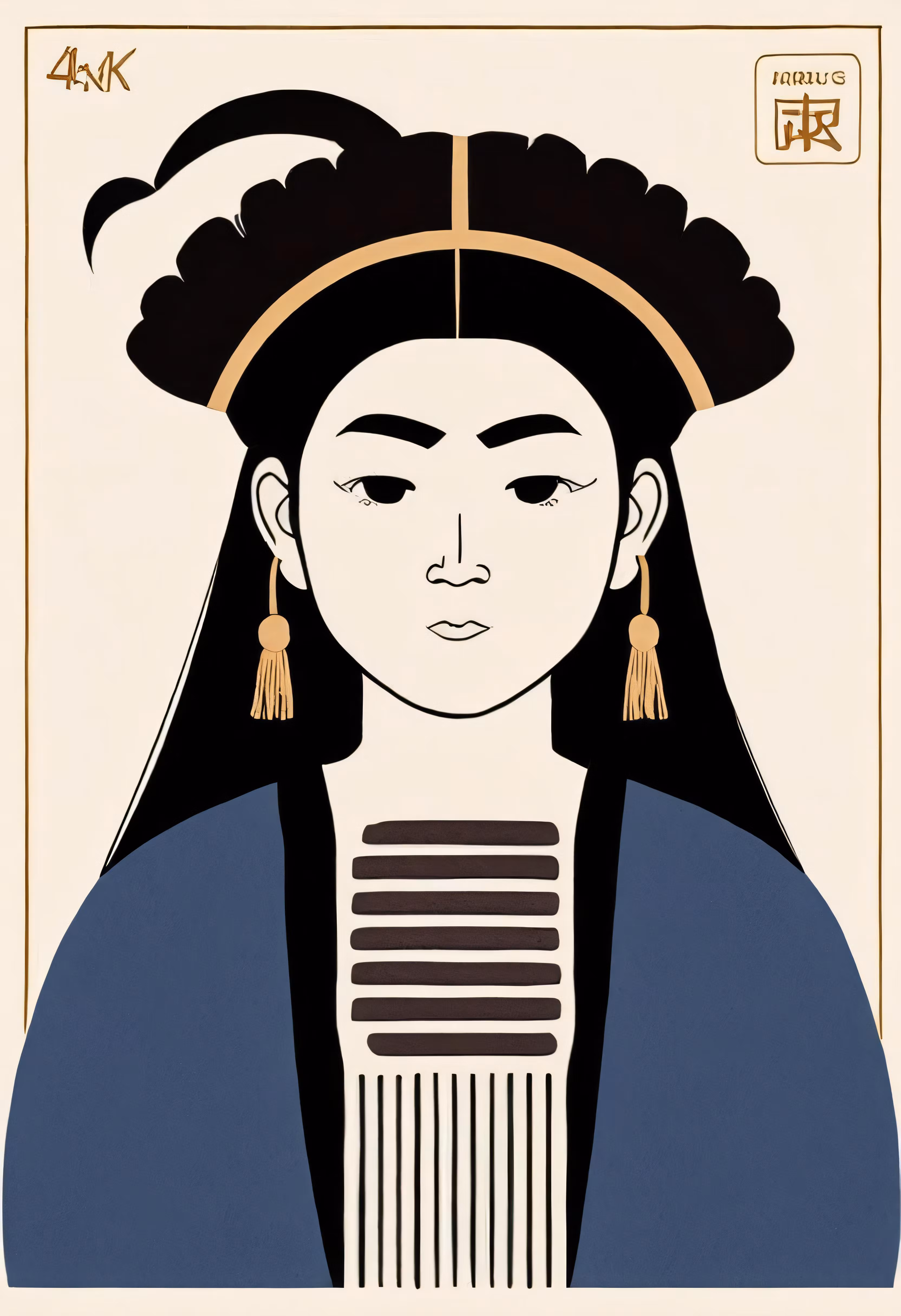 High resolution picture, free to use, the artwork features an asian woman in traditional dress
