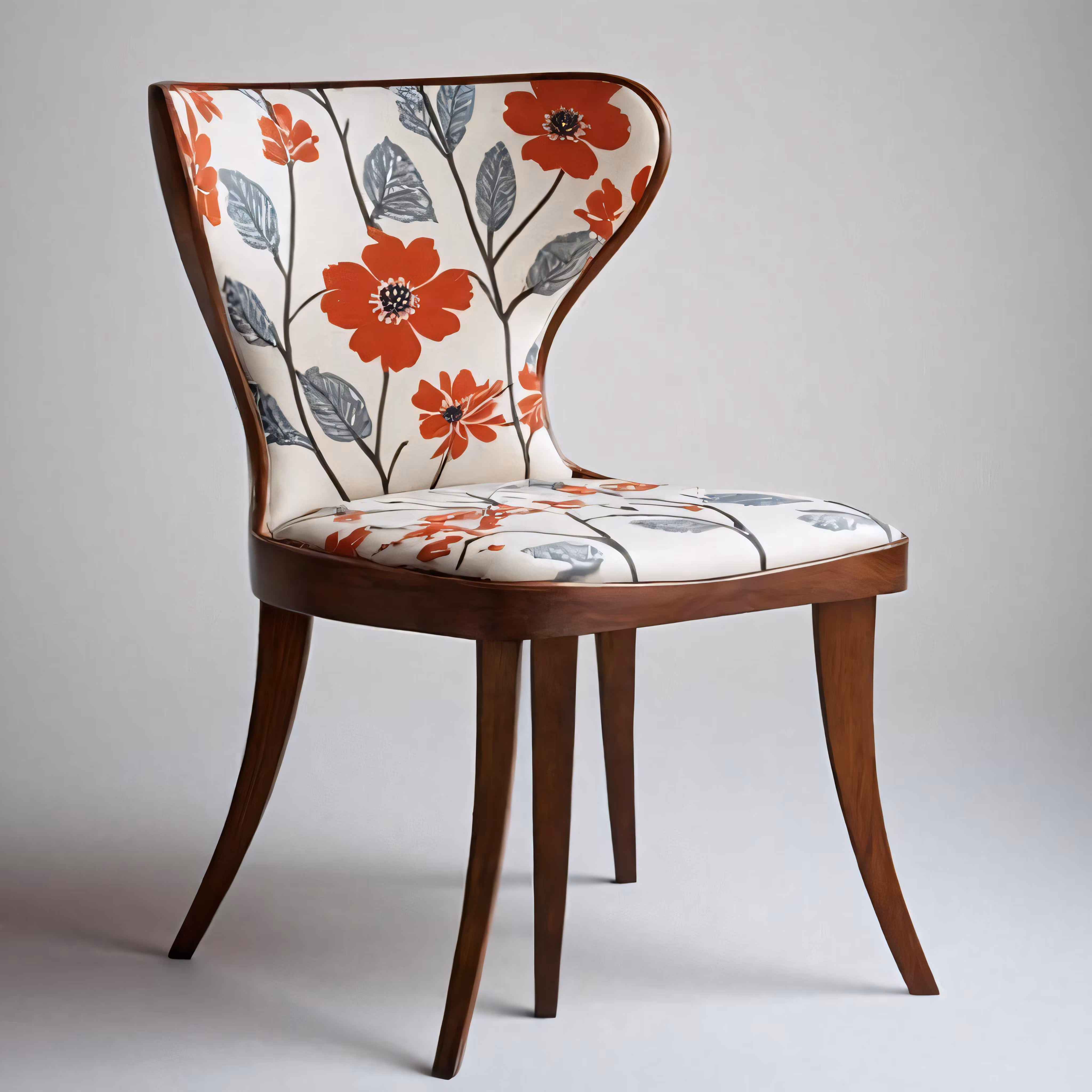High resolution picture, free to use, the back of a chair with red flowers on it
