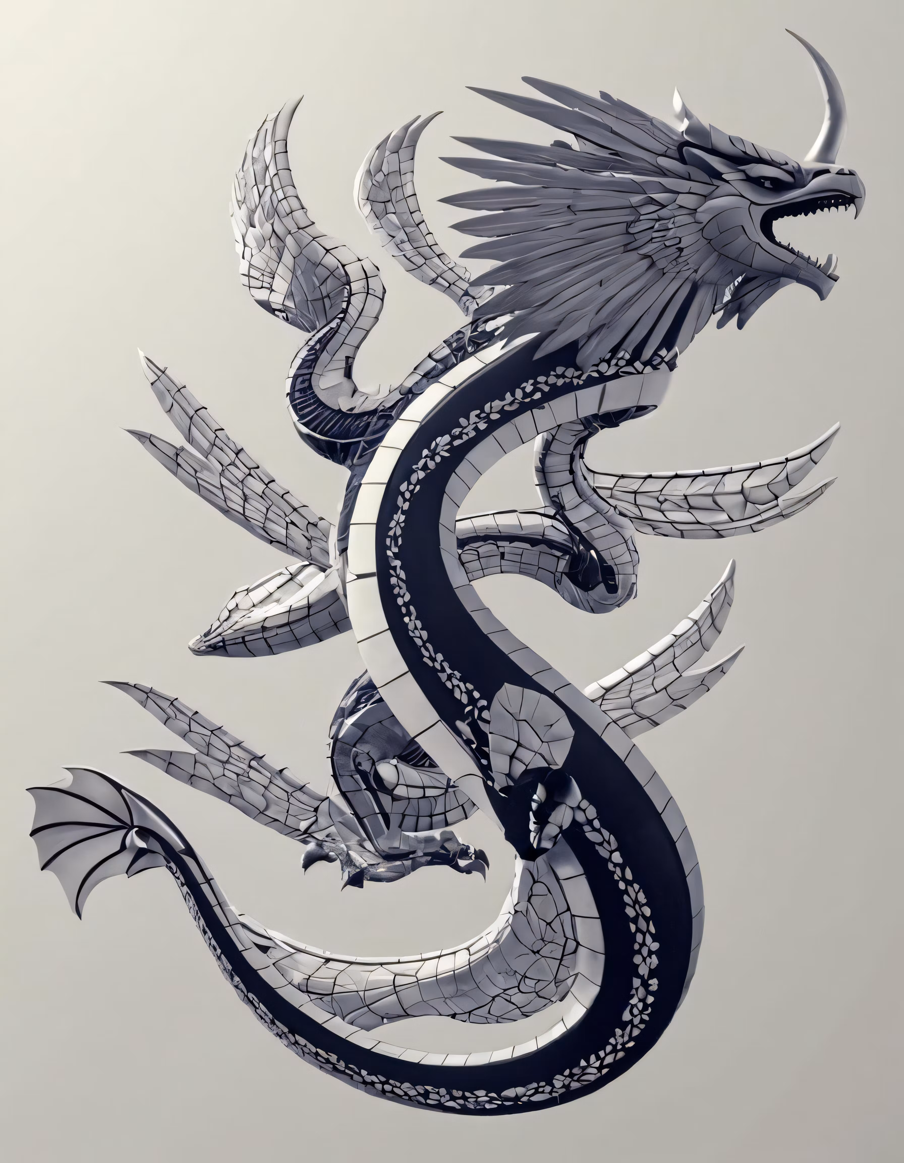 High resolution picture, free to use, the back side of a dragon flying over another bird