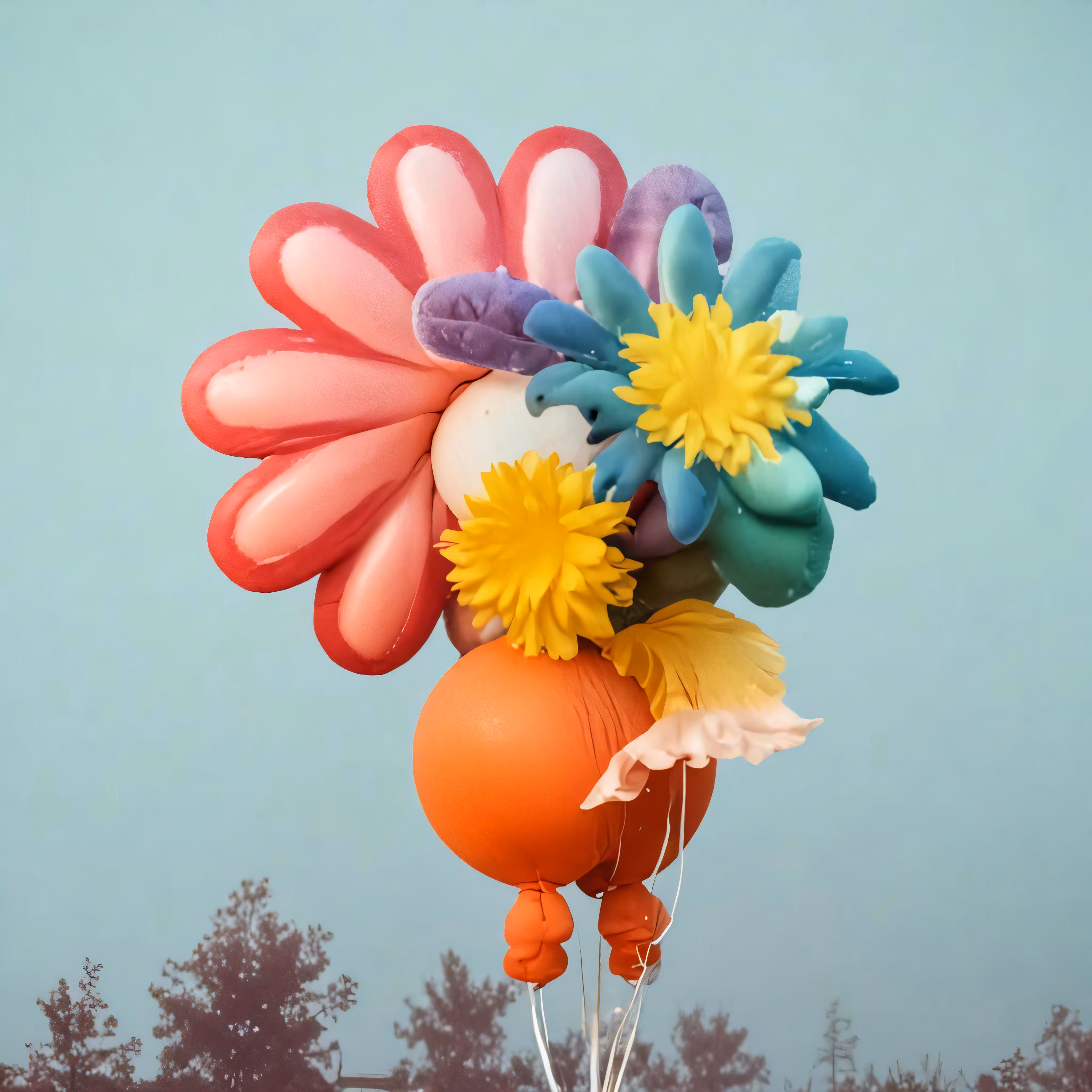 High resolution picture, free to use, the balloon is in the air with flowers in it