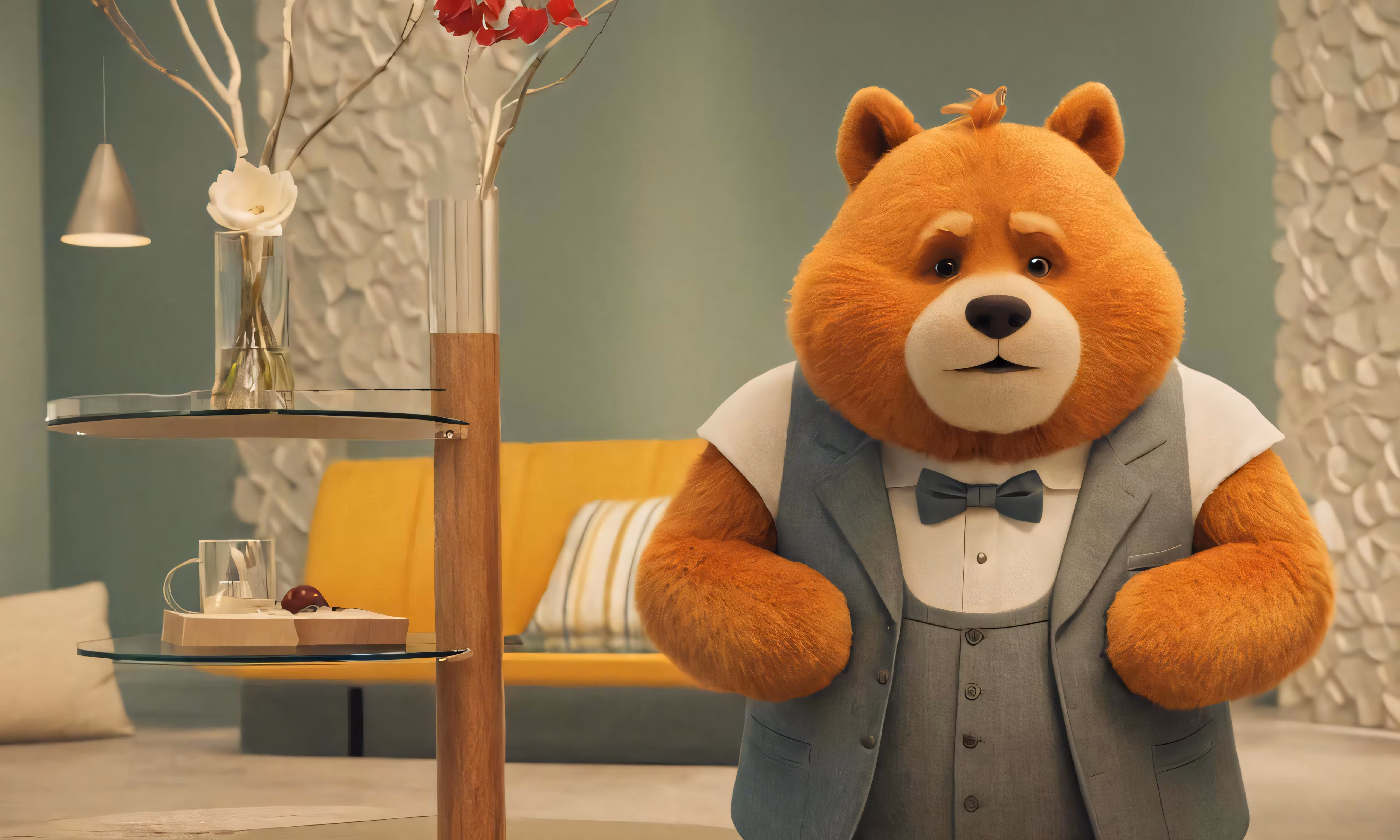 High resolution picture, free to use, the bear is dressed up in tuxedo for the role of teddy bear
