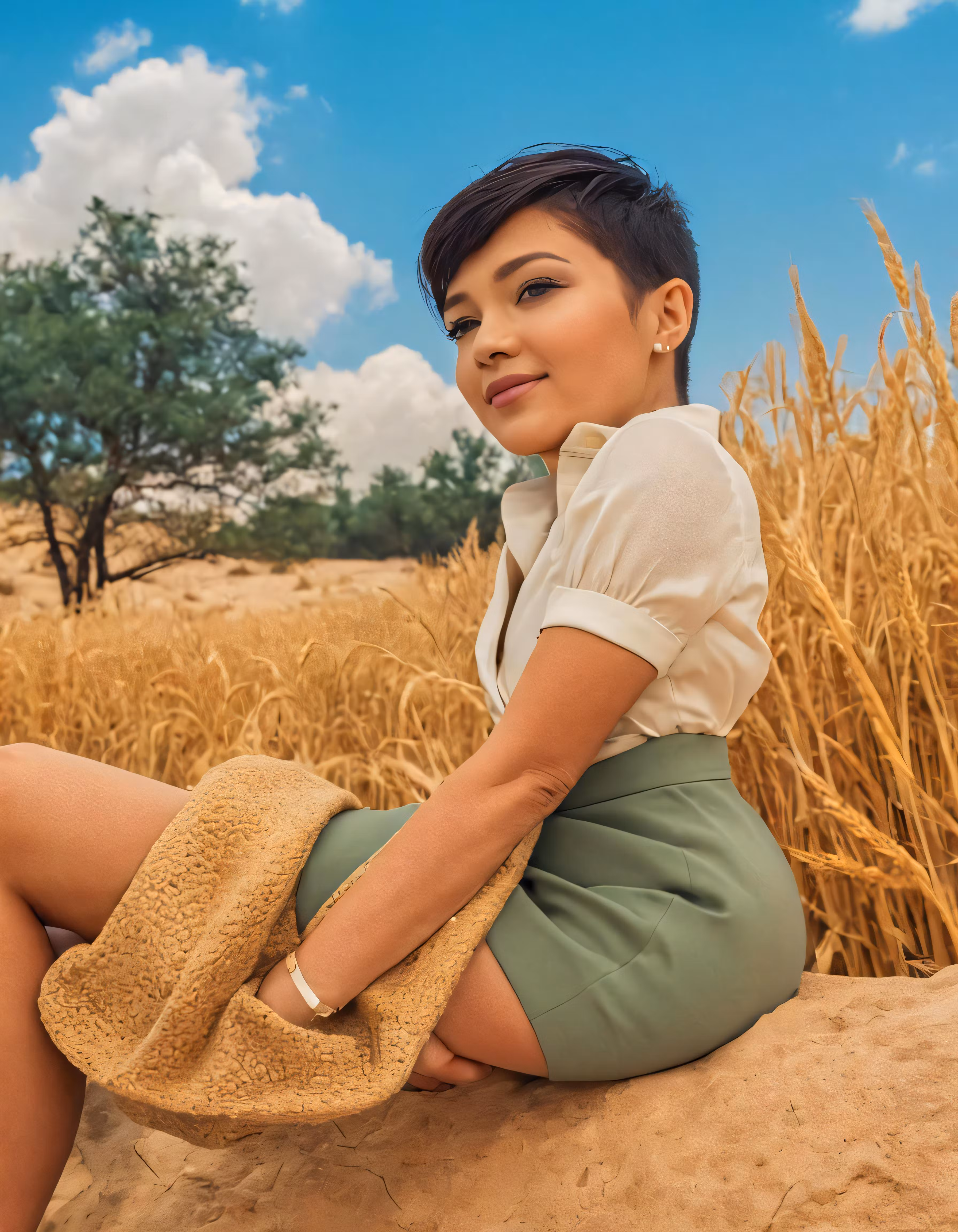 High resolution picture, free to use, the beautiful woman is wearing a hat and sitting on the sand