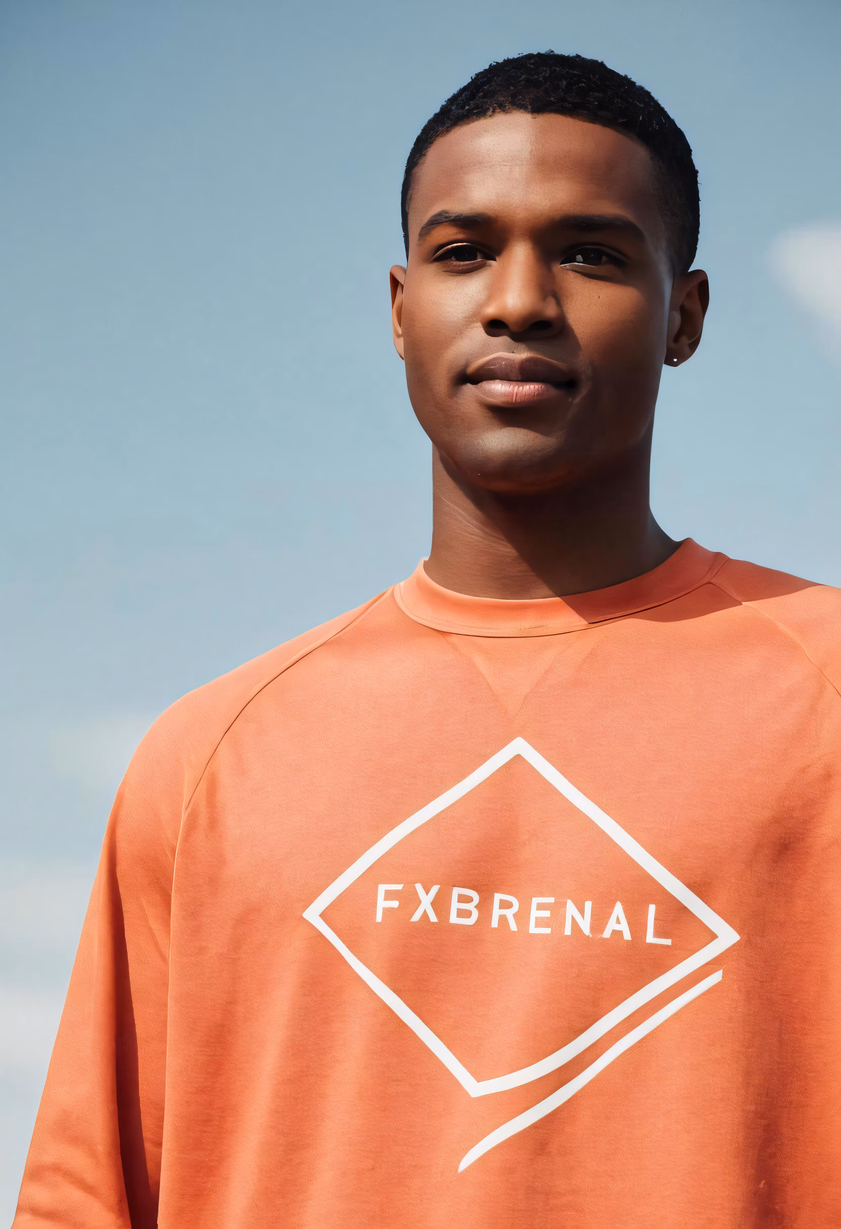 High resolution picture, free to use, the black man in an orange sweatshirt is standing