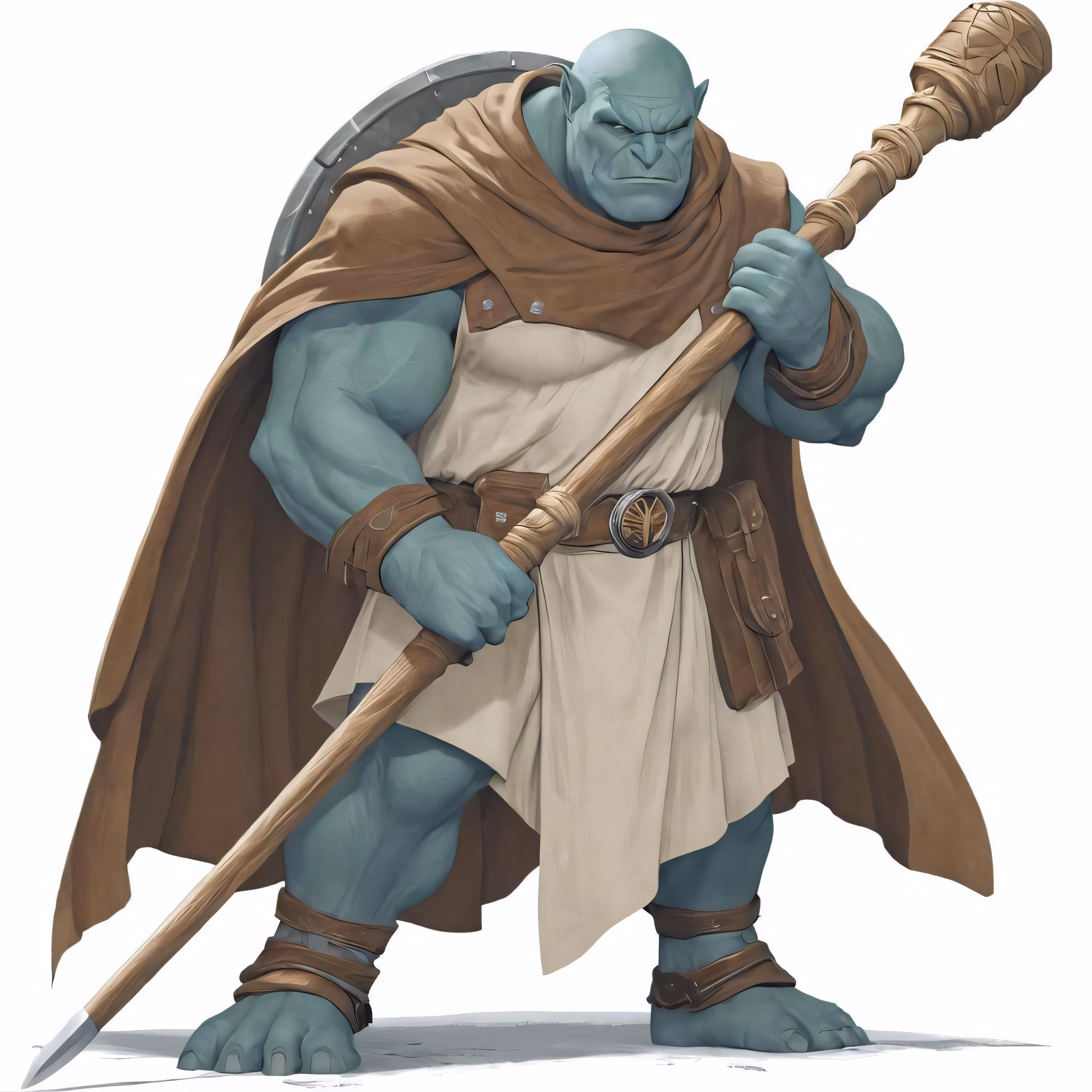 High resolution picture, free to use, the blue man with a staff and a long white sword stands in front of a white background