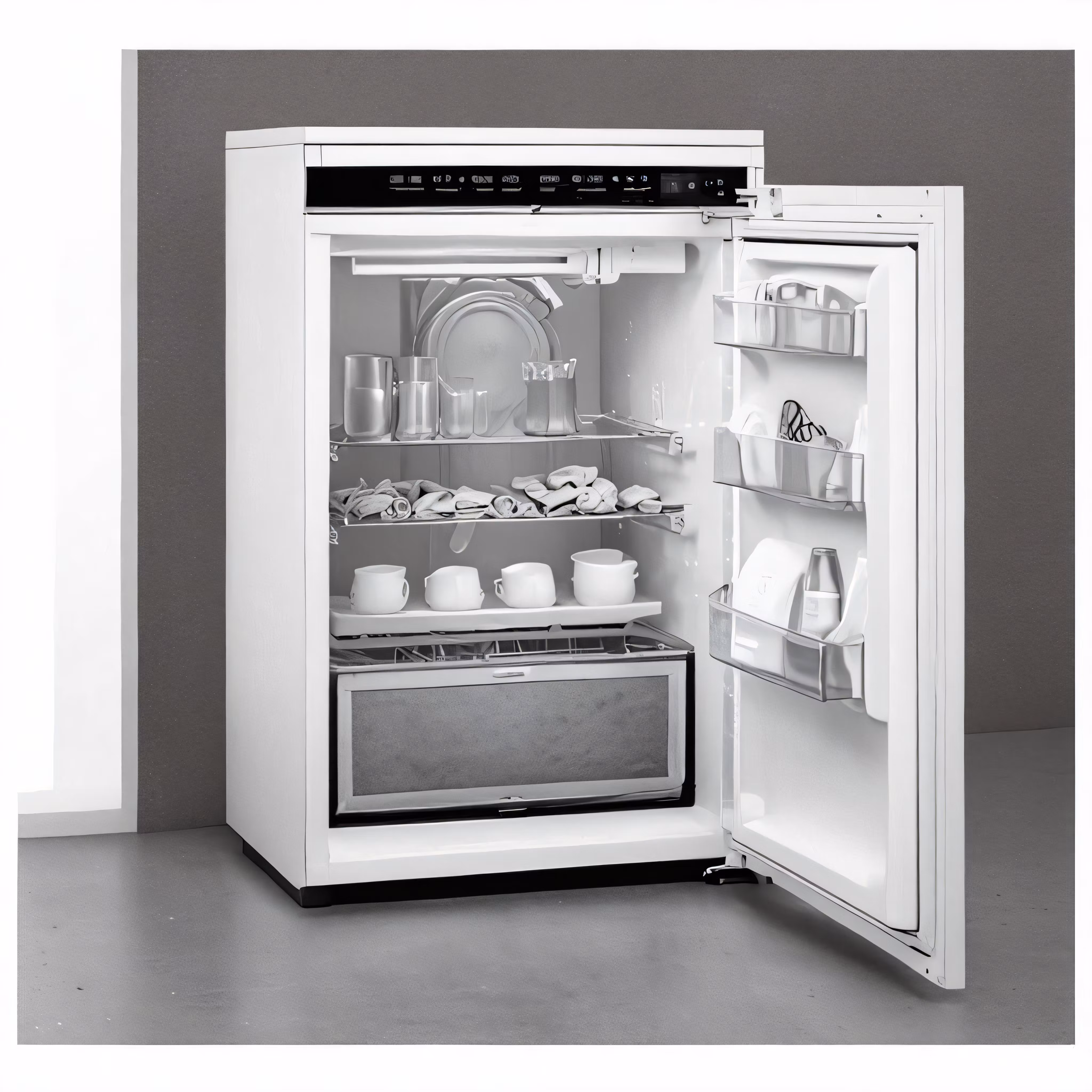 High resolution picture, free to use, the bottom panel of the double door refrigerator is open
