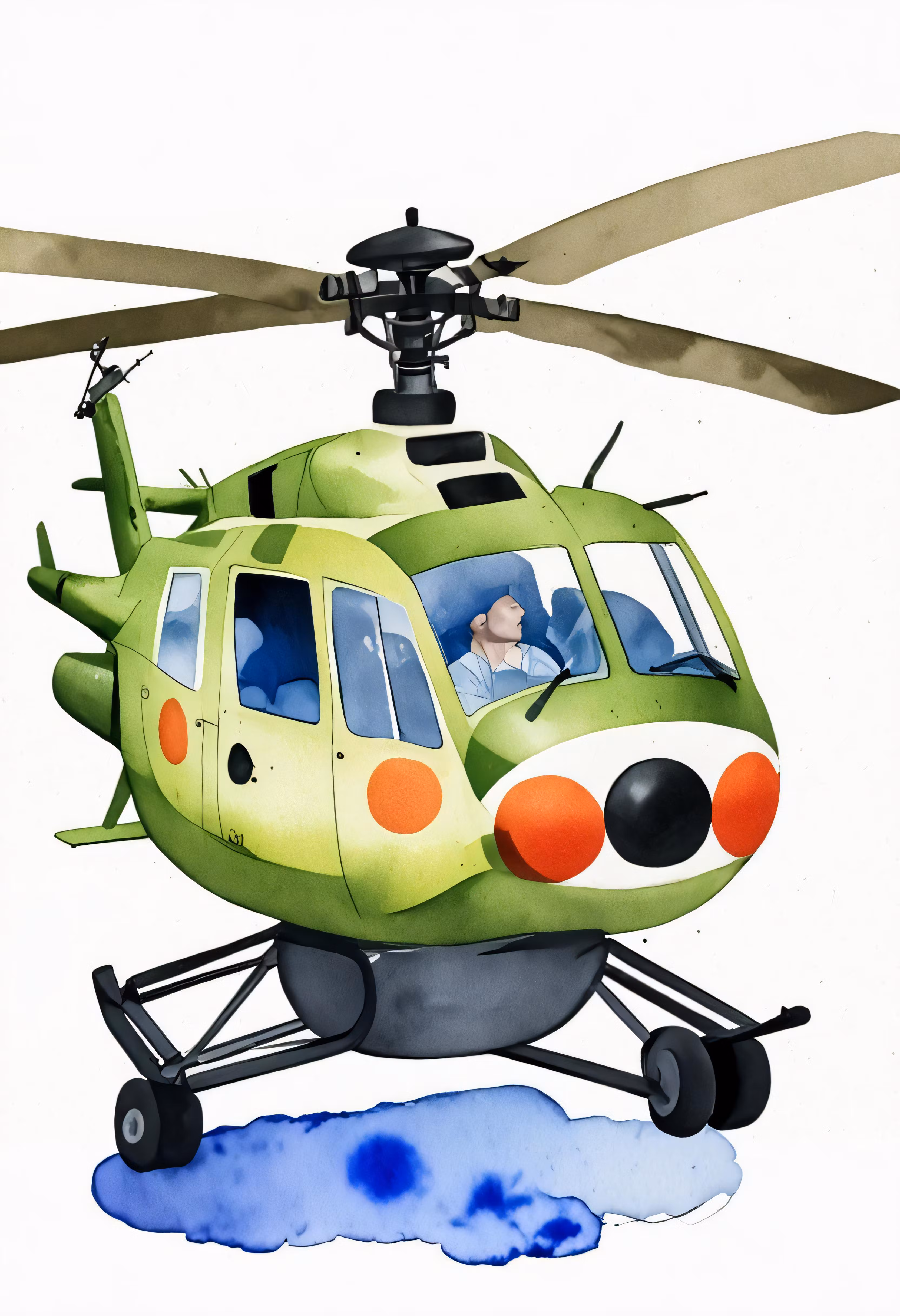 High resolution picture, free to use, the boy is looking out of a green helicopter