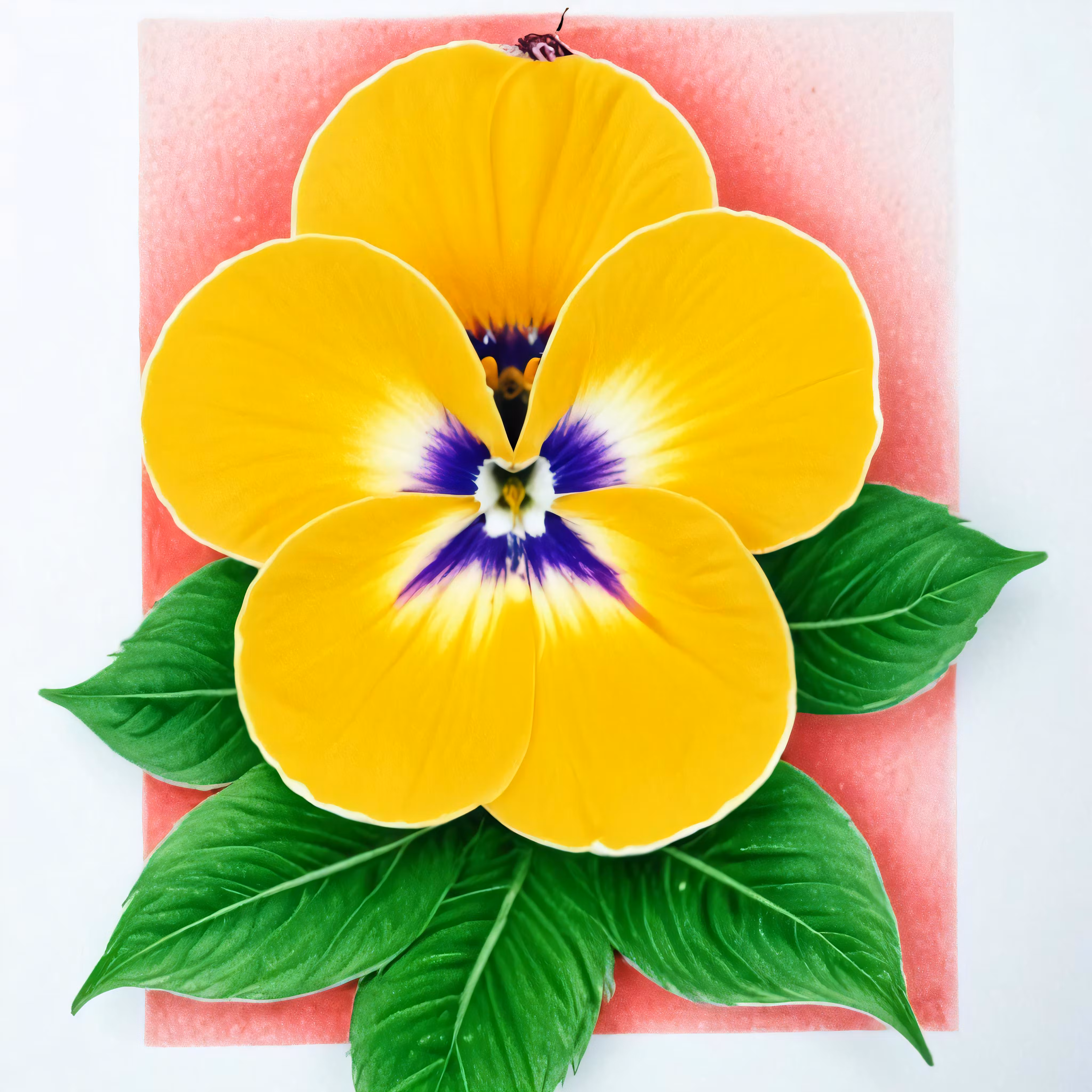 High resolution picture, free to use, the bright yellow pansy flower is surrounded by green leaves