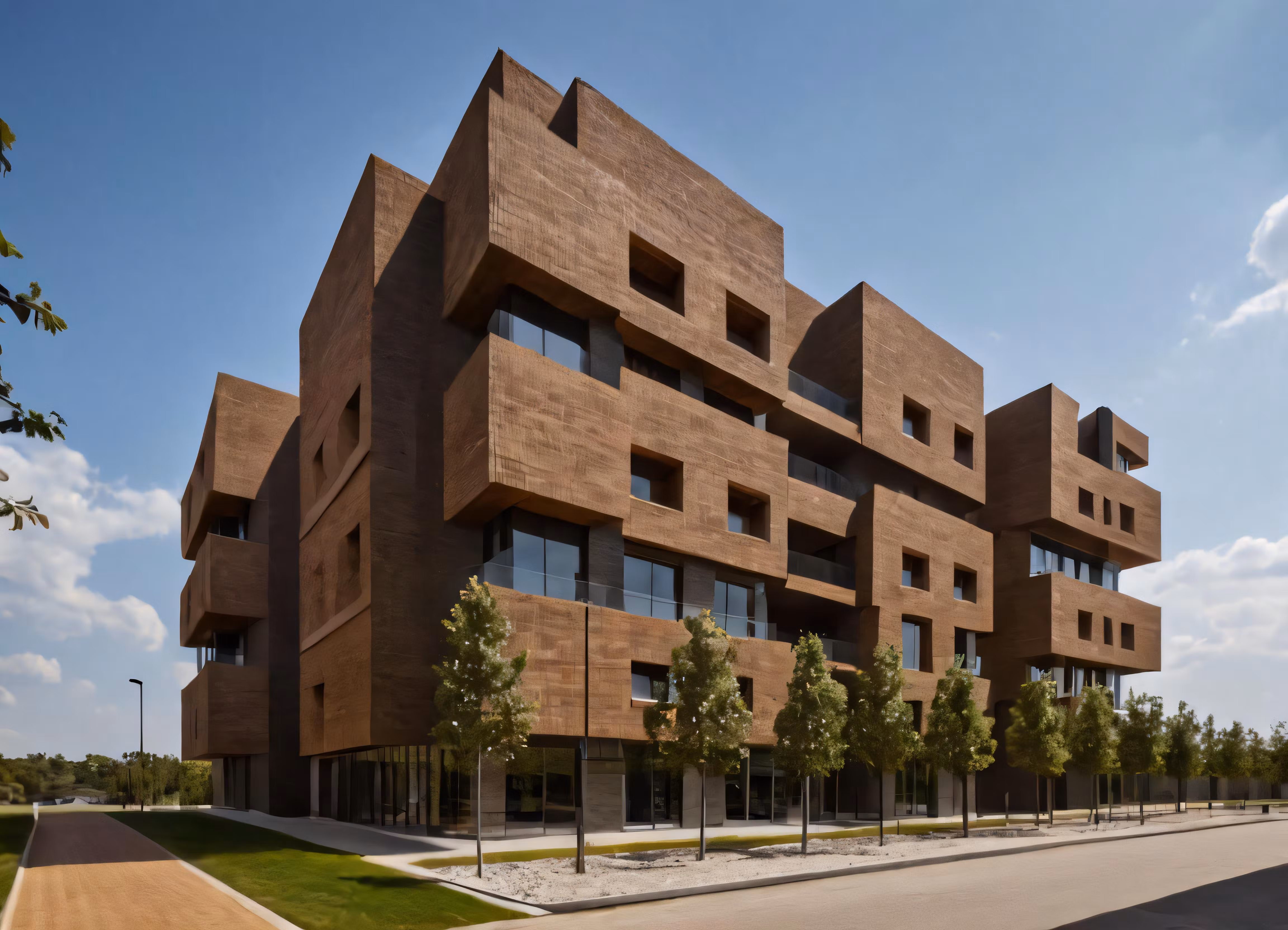 High resolution picture, free to use, the building is designed of bricks and has multiple levels