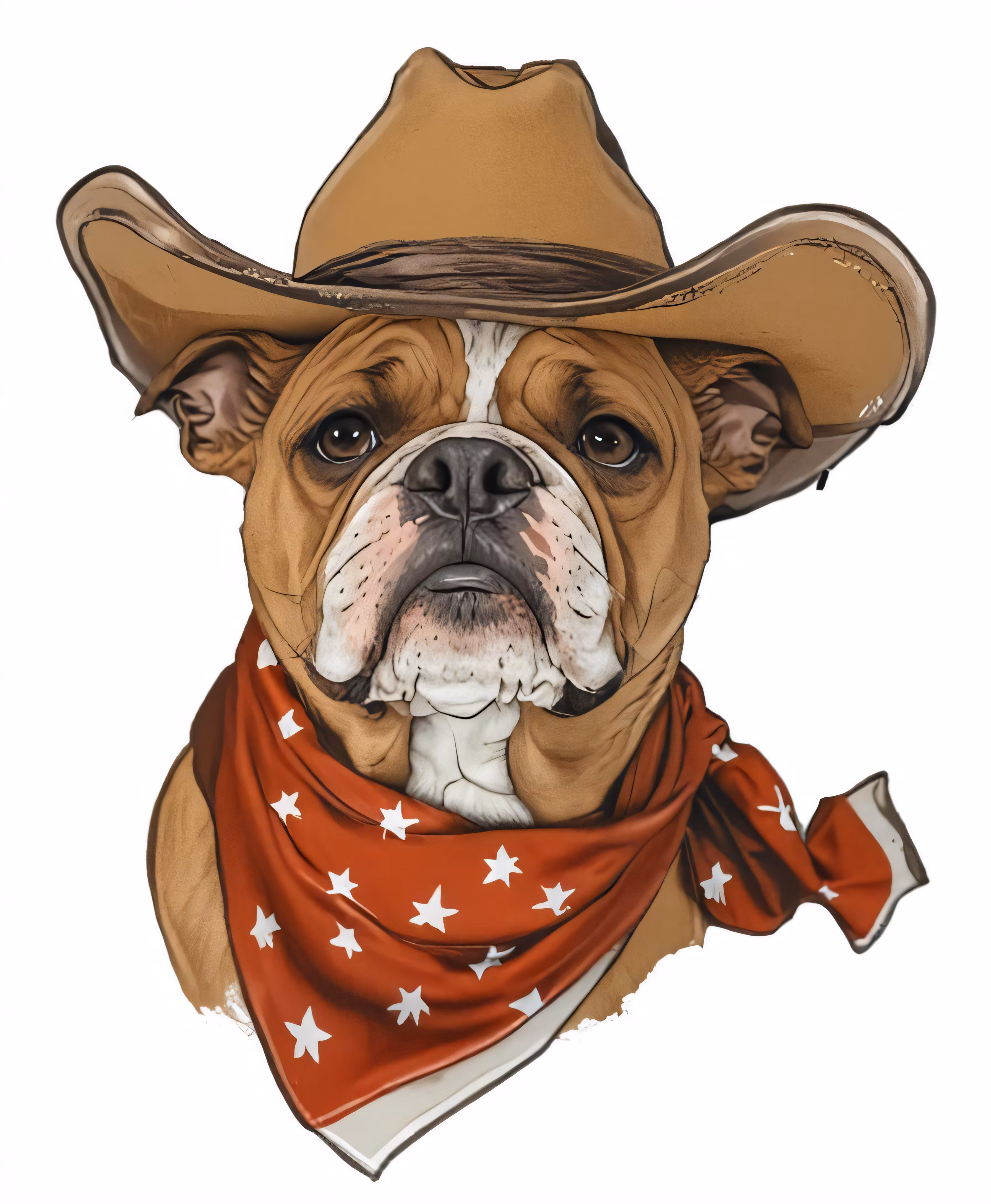 High resolution picture, free to use, the bull dog is wearing a hat and a scarf