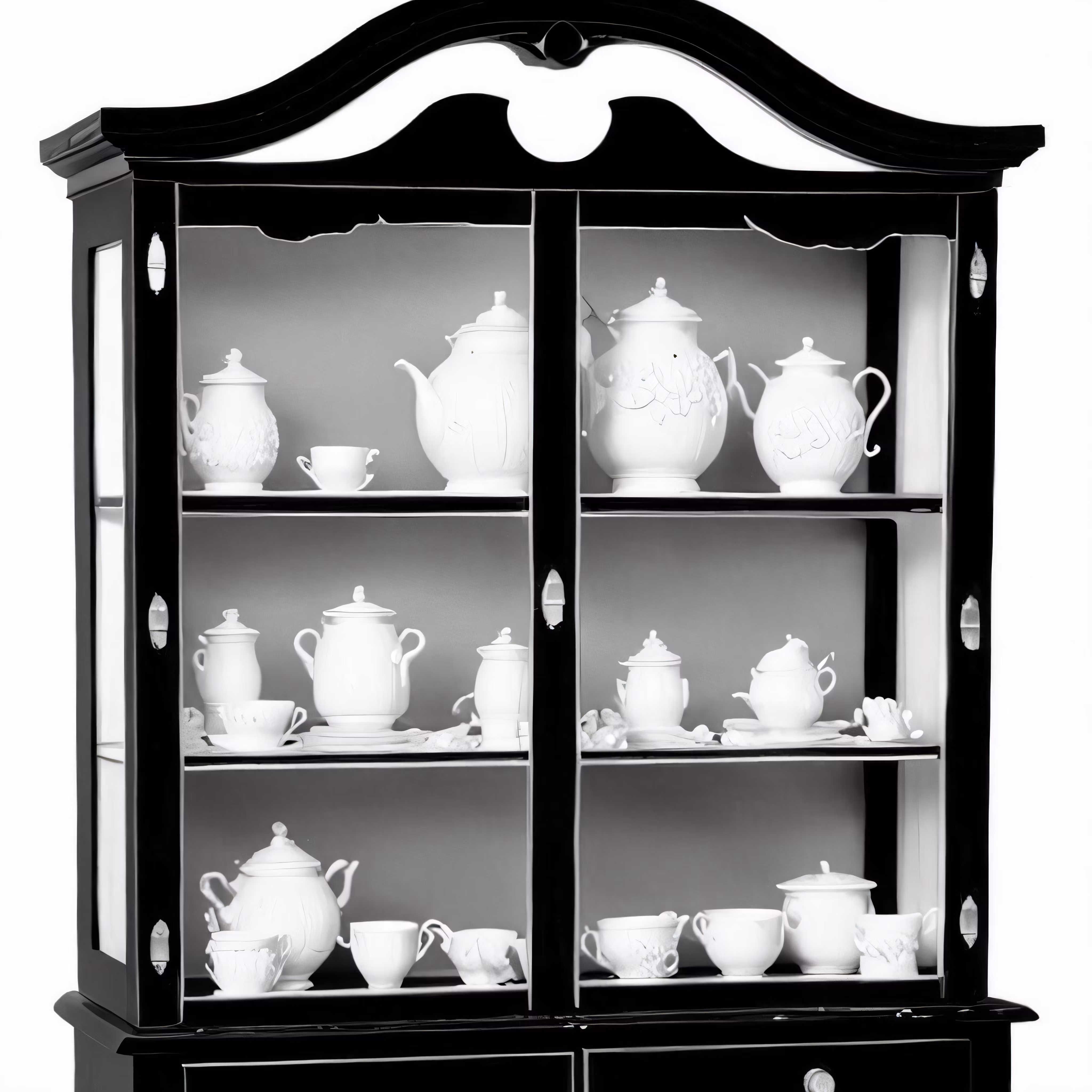 High resolution picture, free to use, the cabinet is black with china cups and china