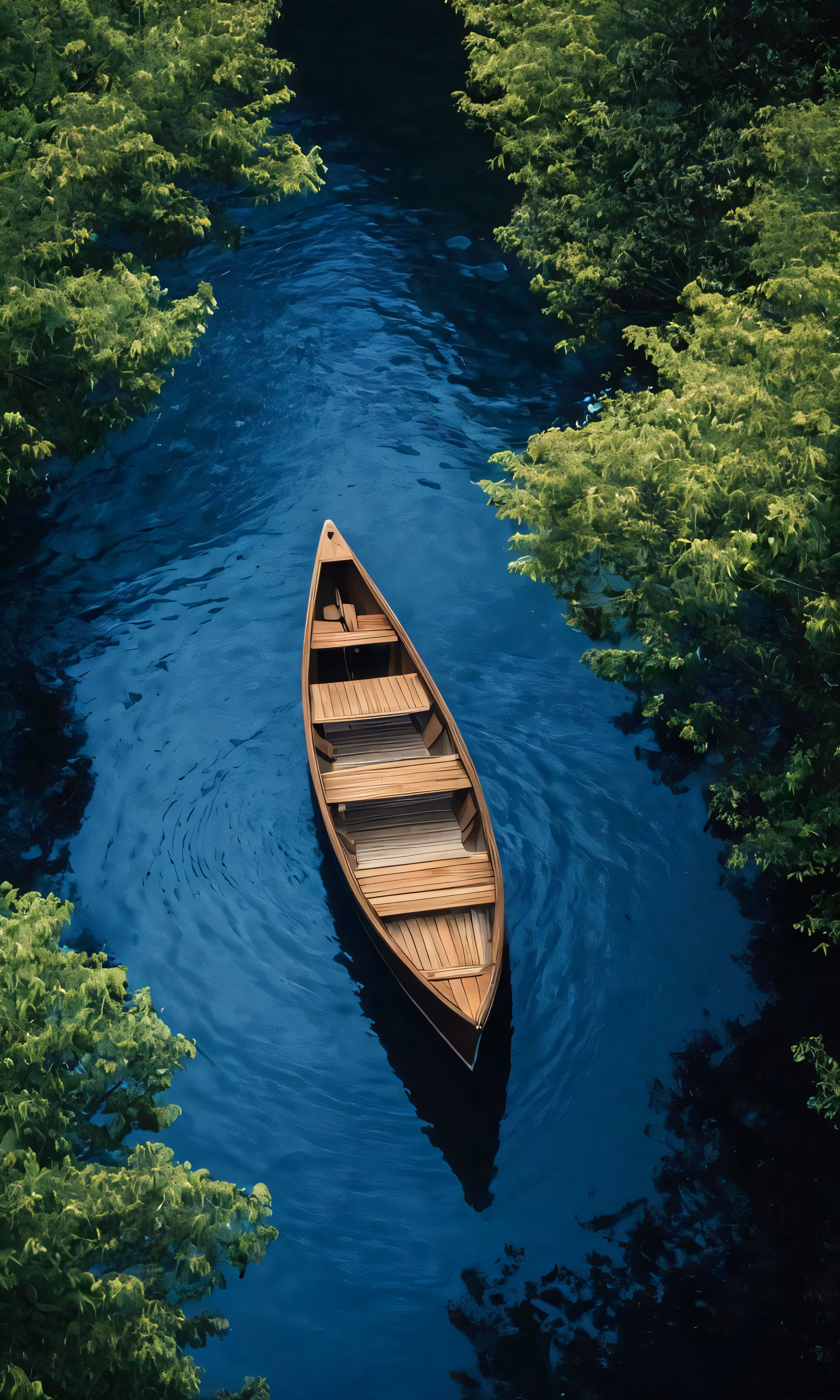 High resolution picture, free to use, the canoe is floating on the lake and the water