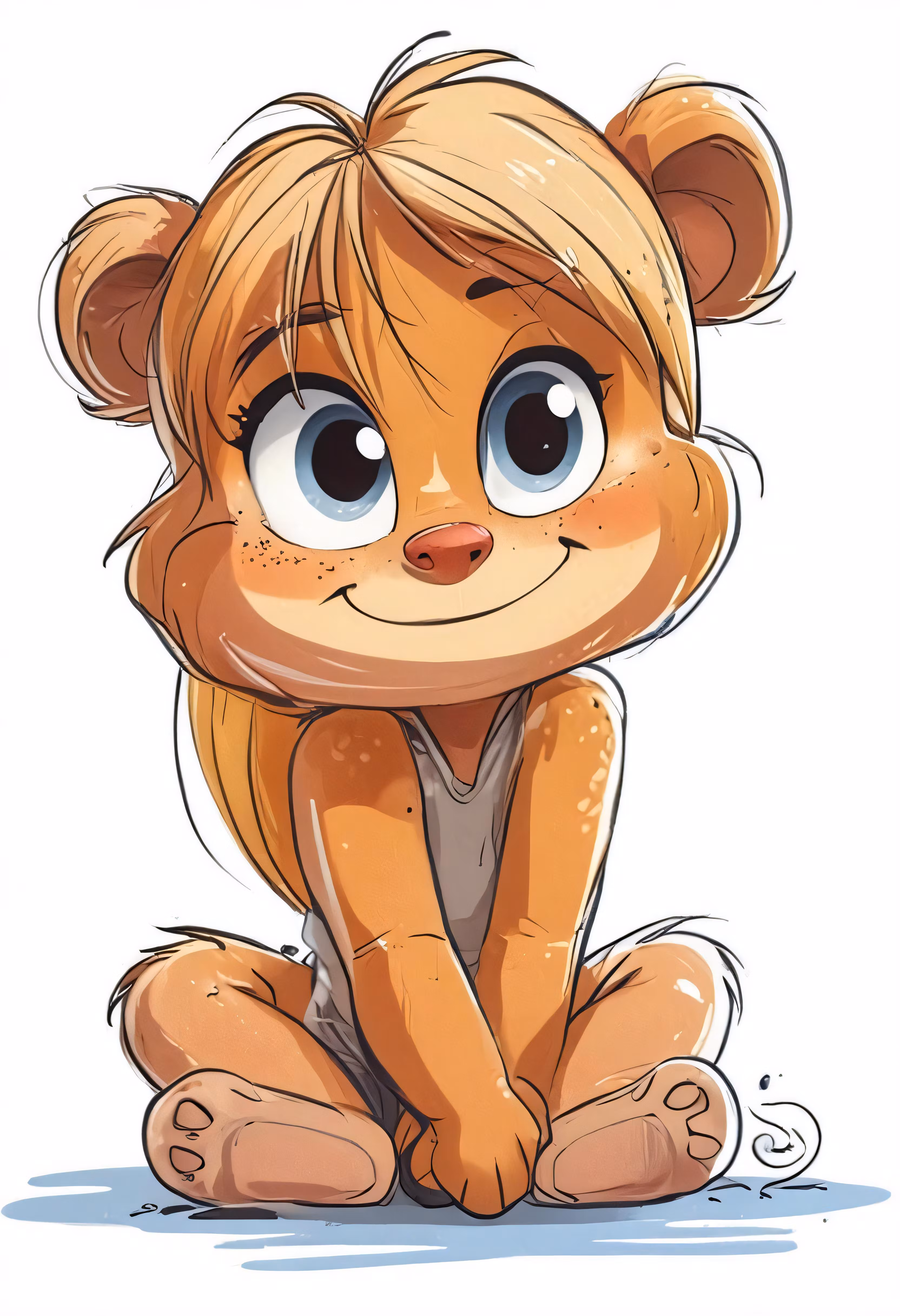 High resolution picture, free to use, the cartoon animal with big eyes, sitting down and looking sad