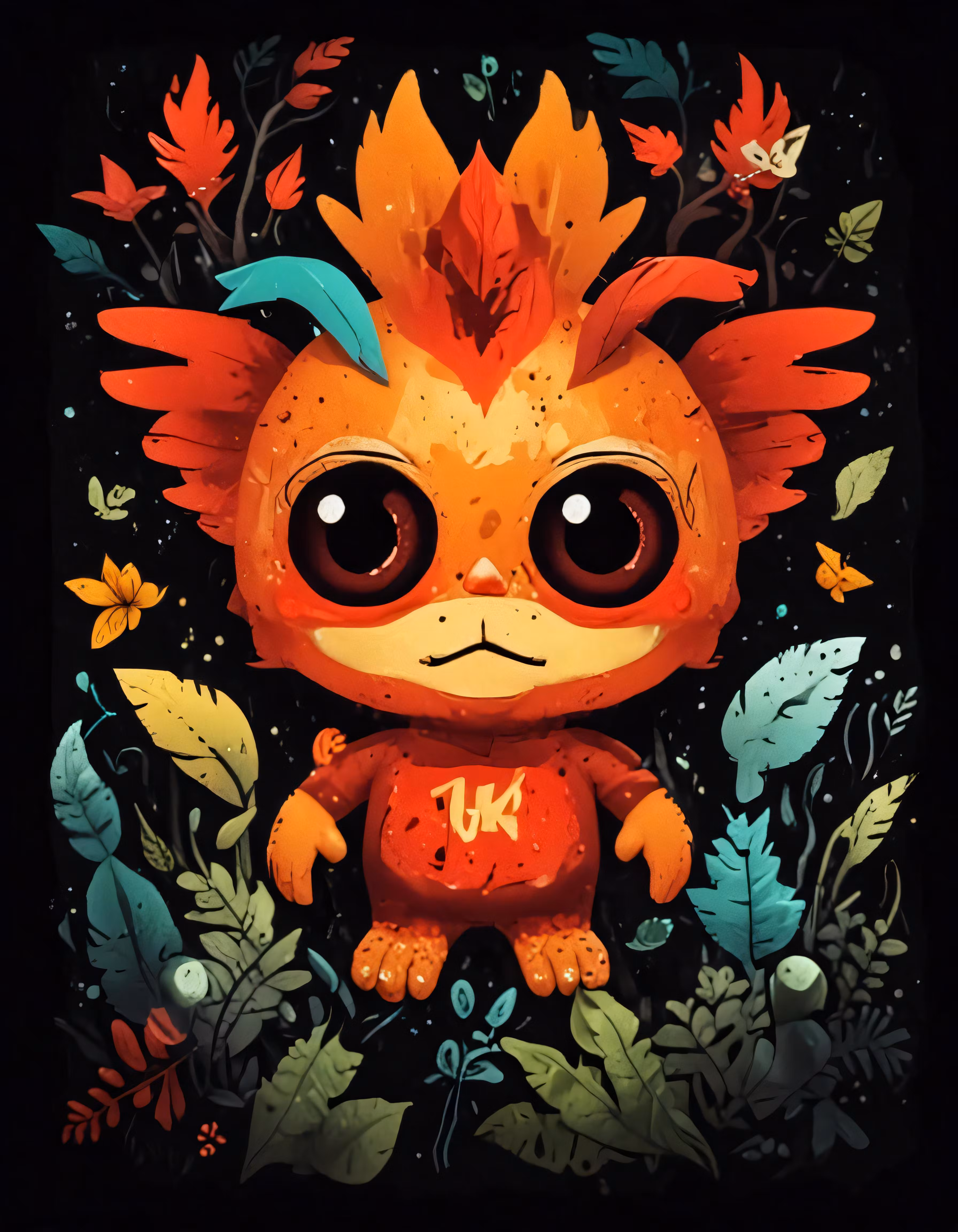 High resolution picture, free to use, the cartoon bear is surrounded by colorful leaves and foliage