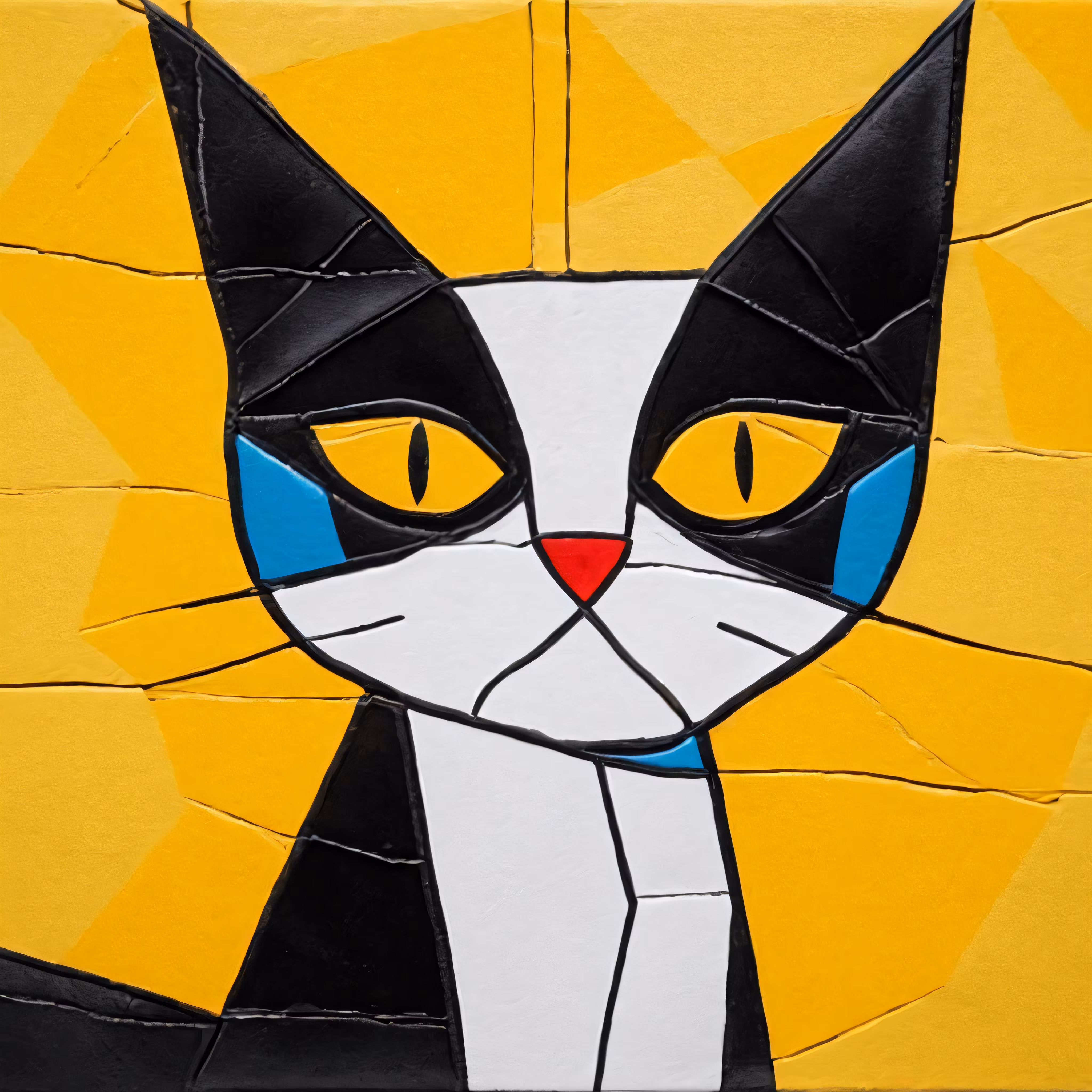 High resolution picture, free to use, the cat is decorated with yellow and blue