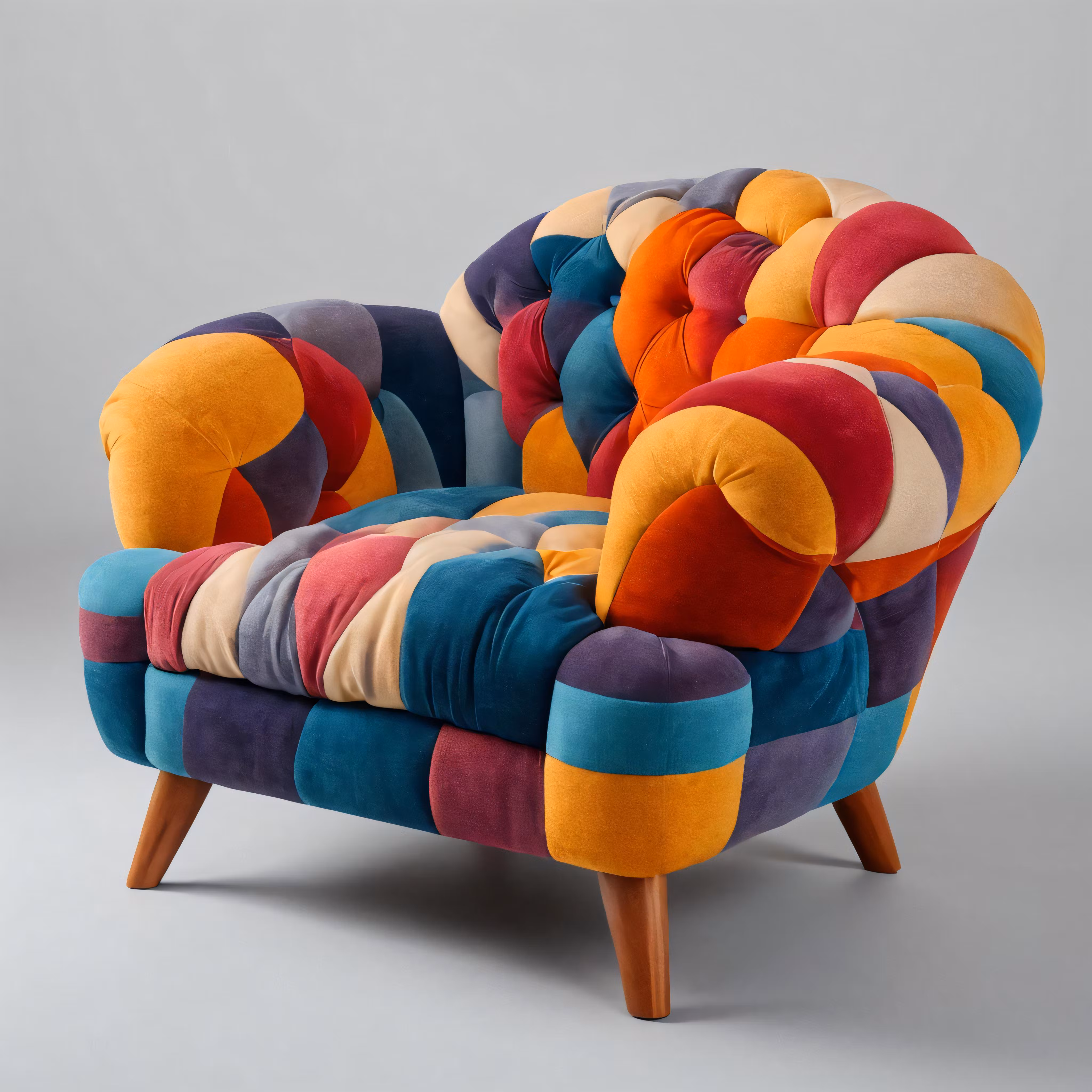 High resolution picture, free to use, the chair is made up of multi   colored fabrics