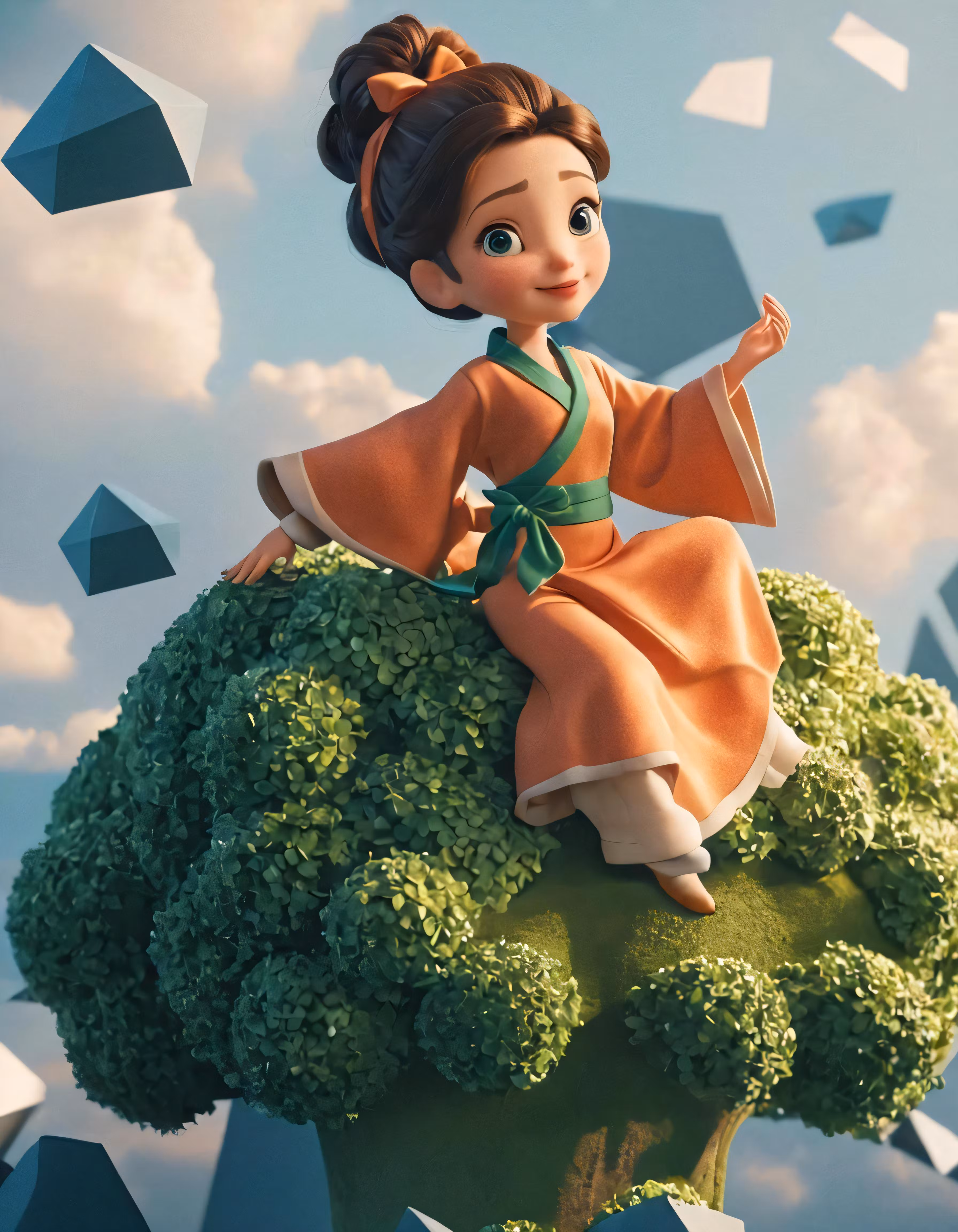 High resolution picture, free to use, the character disney princess on top of broccoli with her arms outstretched