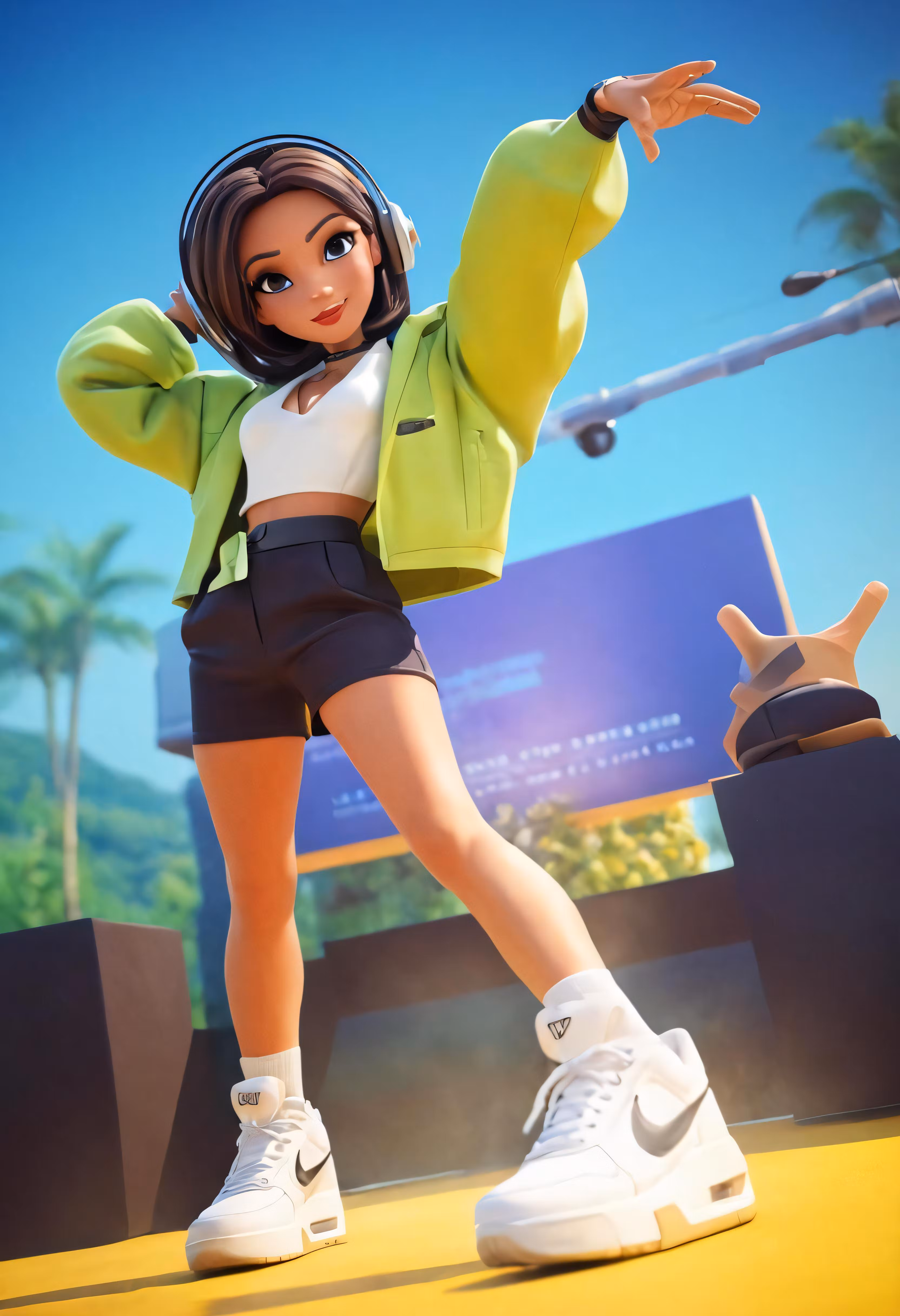 High resolution picture, free to use, the character is dancing in her new animated video game