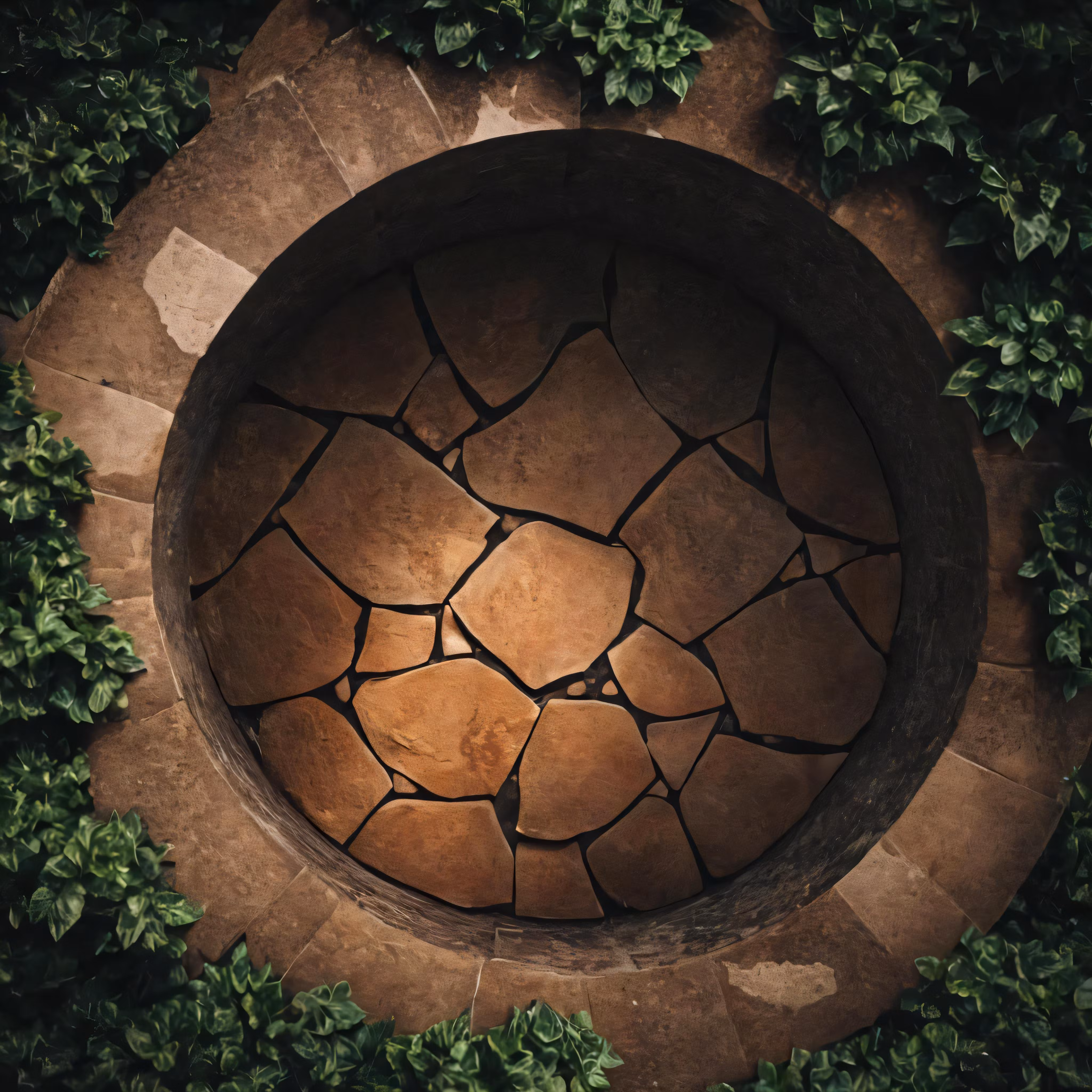 High resolution picture, free to use, the circular fountain is surrounded by a bush