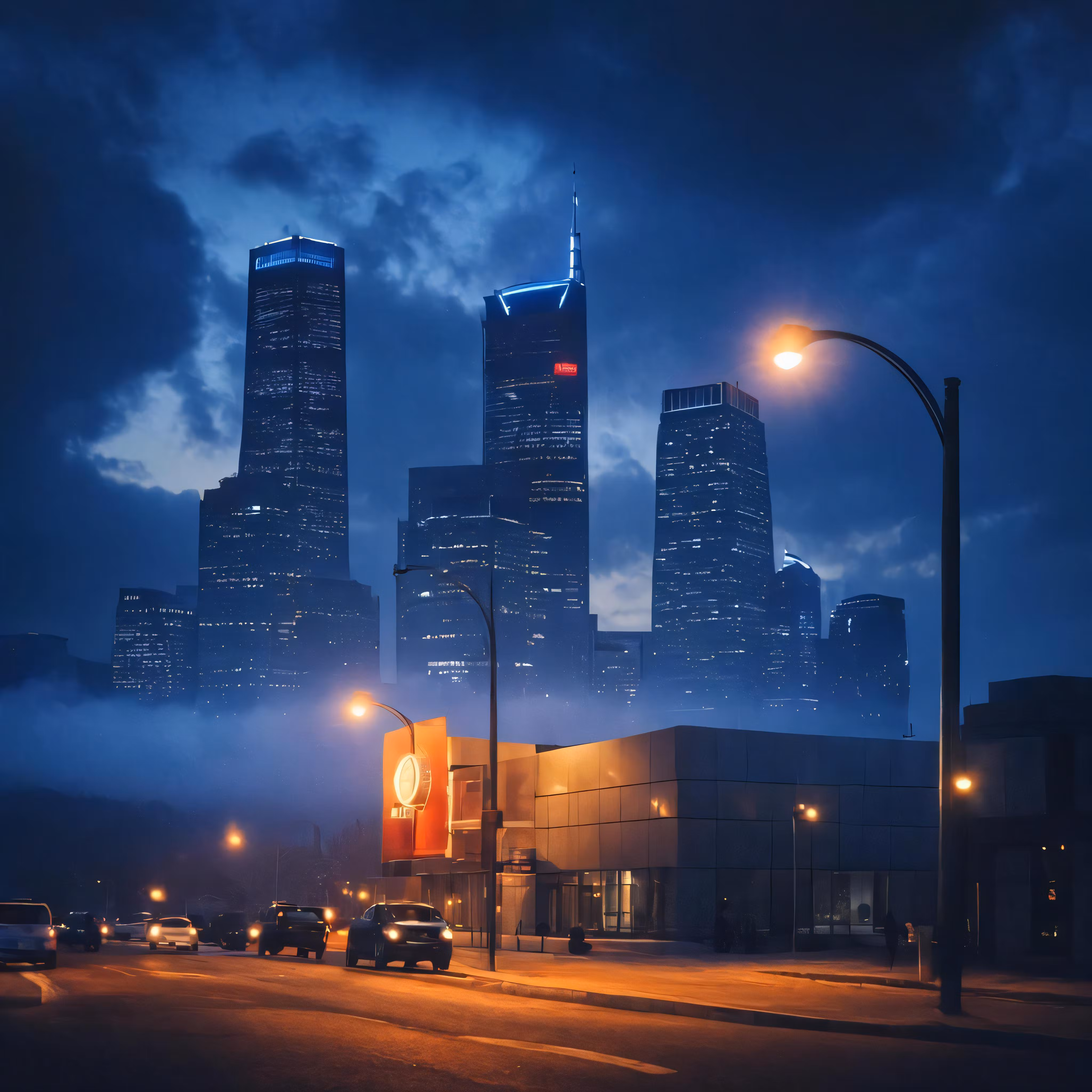 High resolution picture, free to use, the city with skyscrapers on a cloudy evening