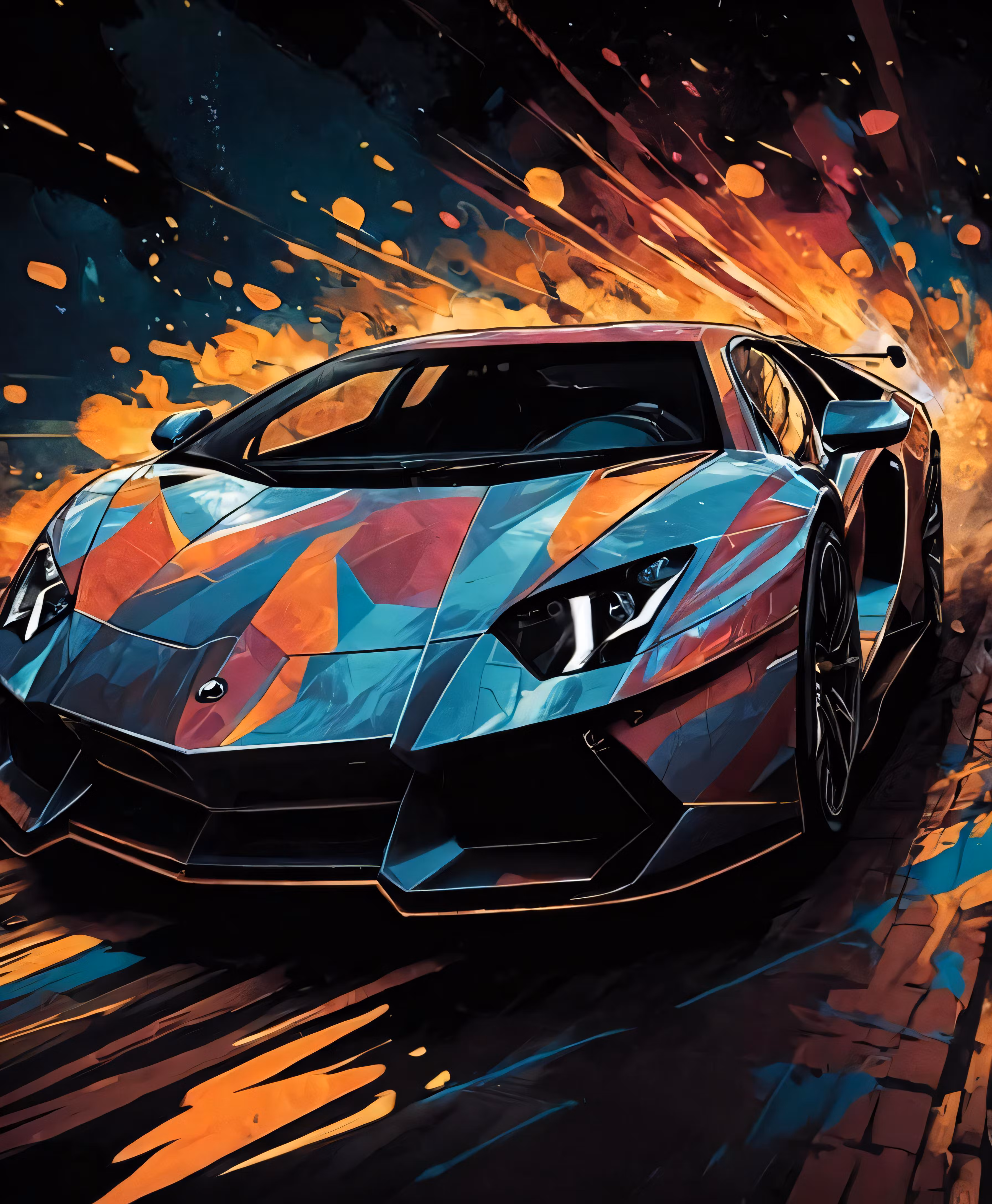 High resolution picture, free to use, the colorful lamb car is driving down a street