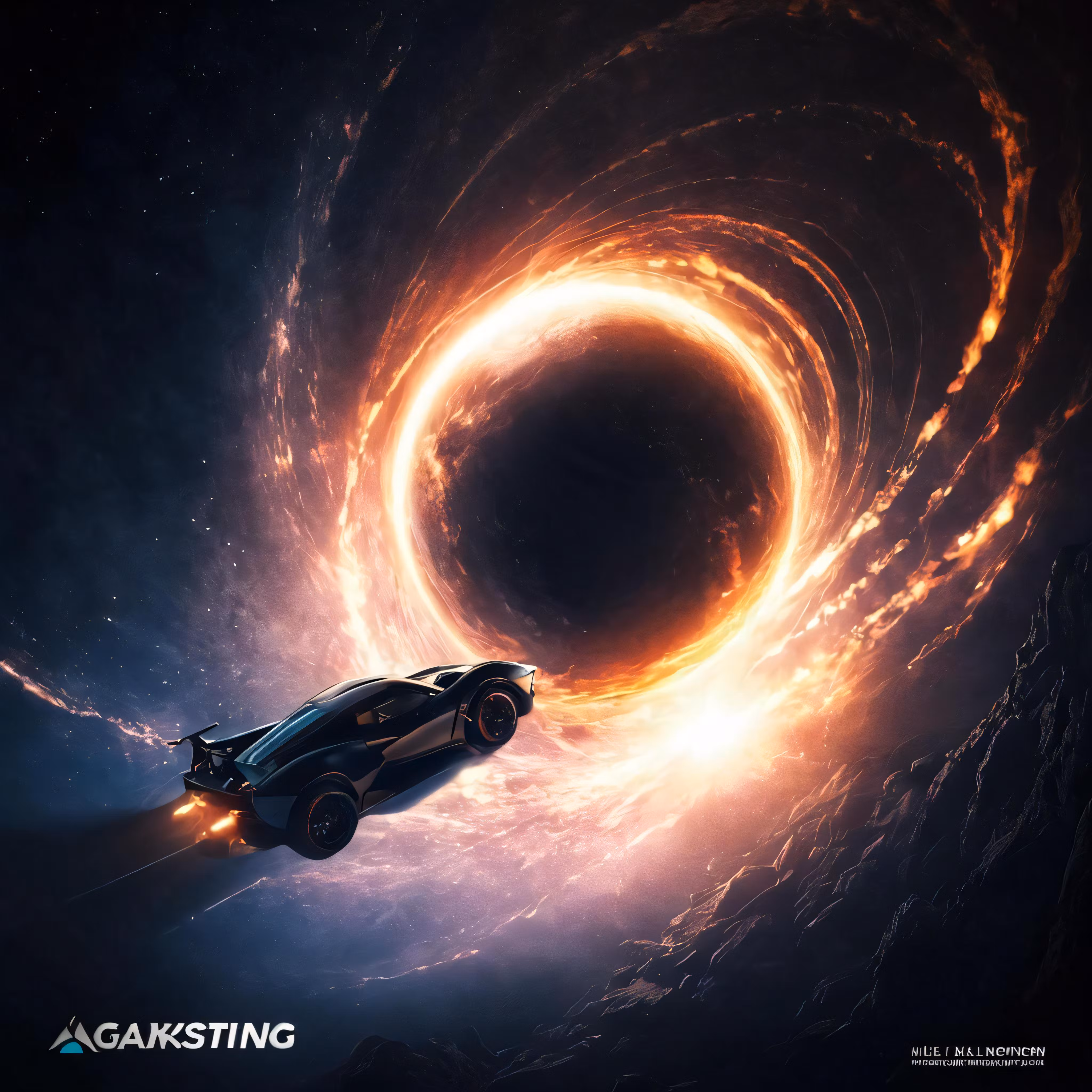 High resolution picture, free to use, the concept car is in space by an enormous ball of fire