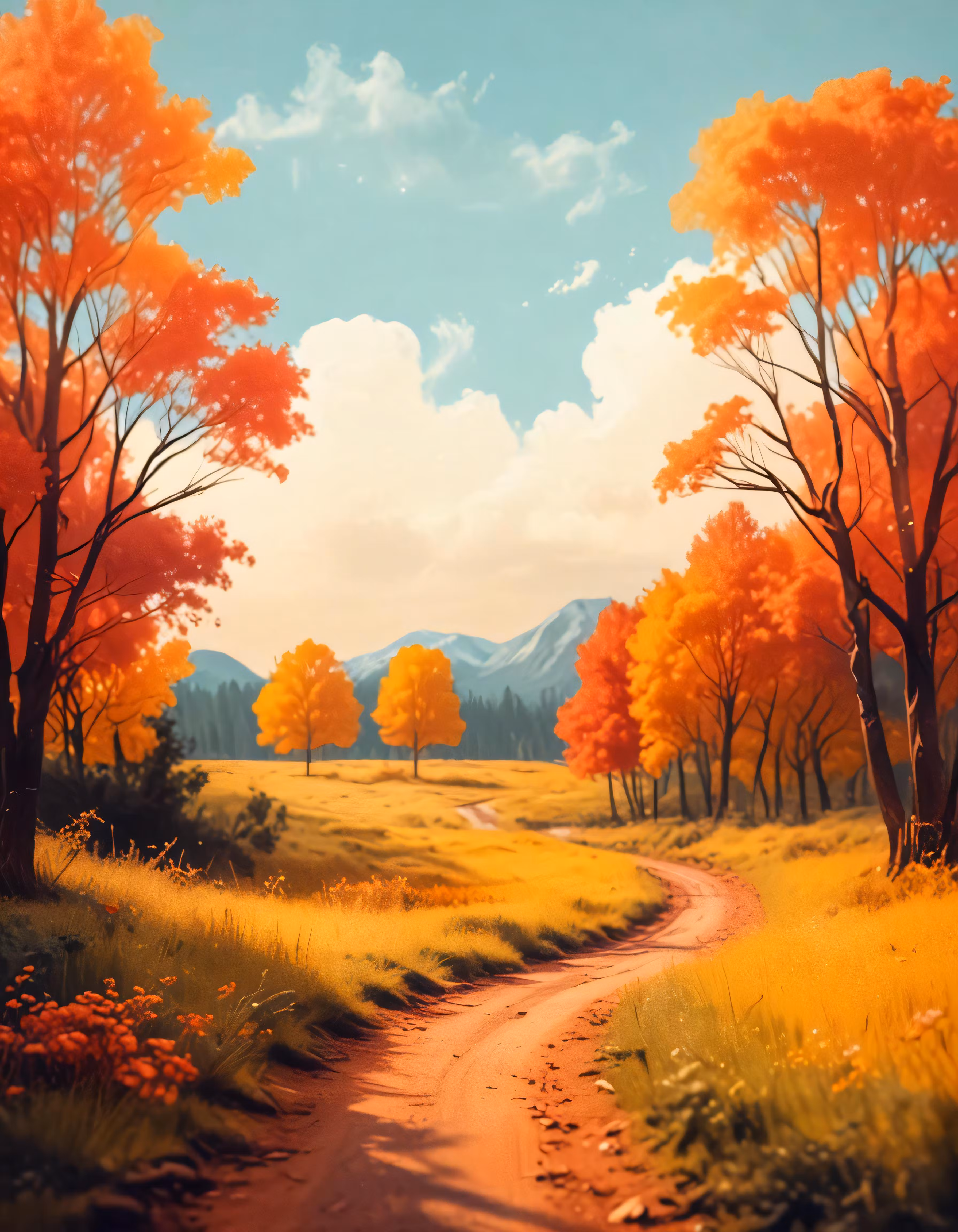 High resolution picture, free to use, the countryside with trees, grass, and a dirt path