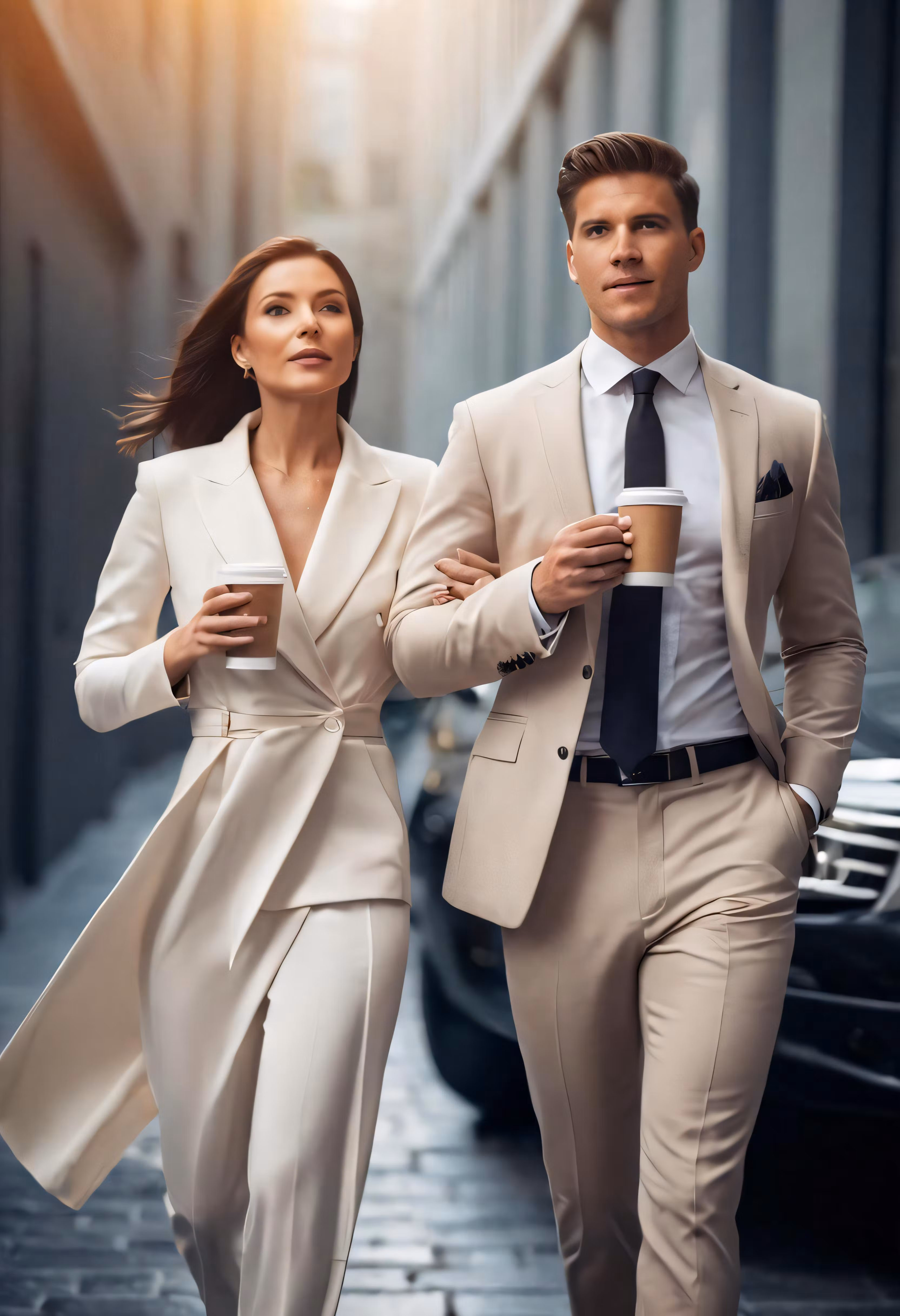 High resolution picture, free to use, the couple is walking down the street while holding coffee