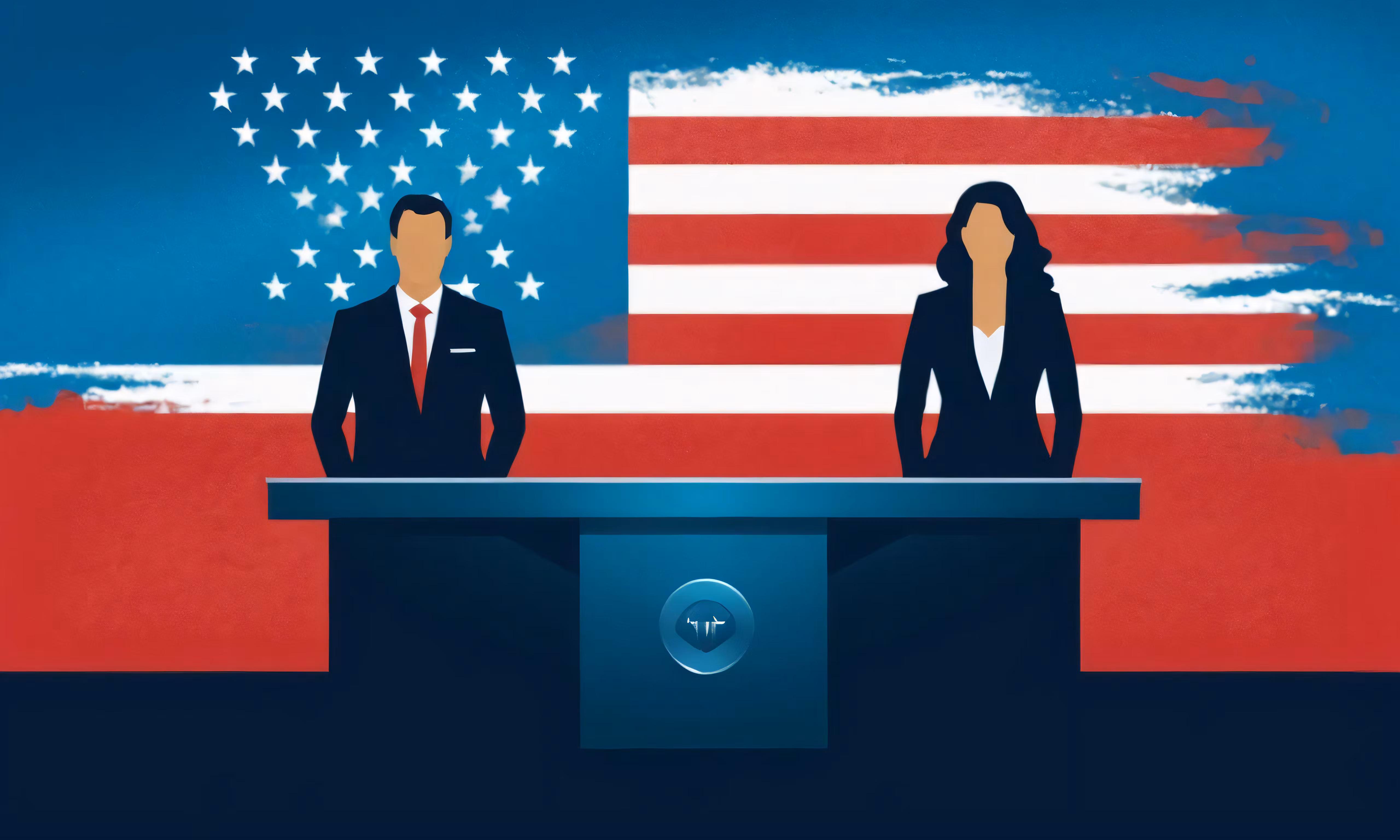 High resolution picture, free to use, the cover to the autumn /a man and woman are standing in front of an american flag