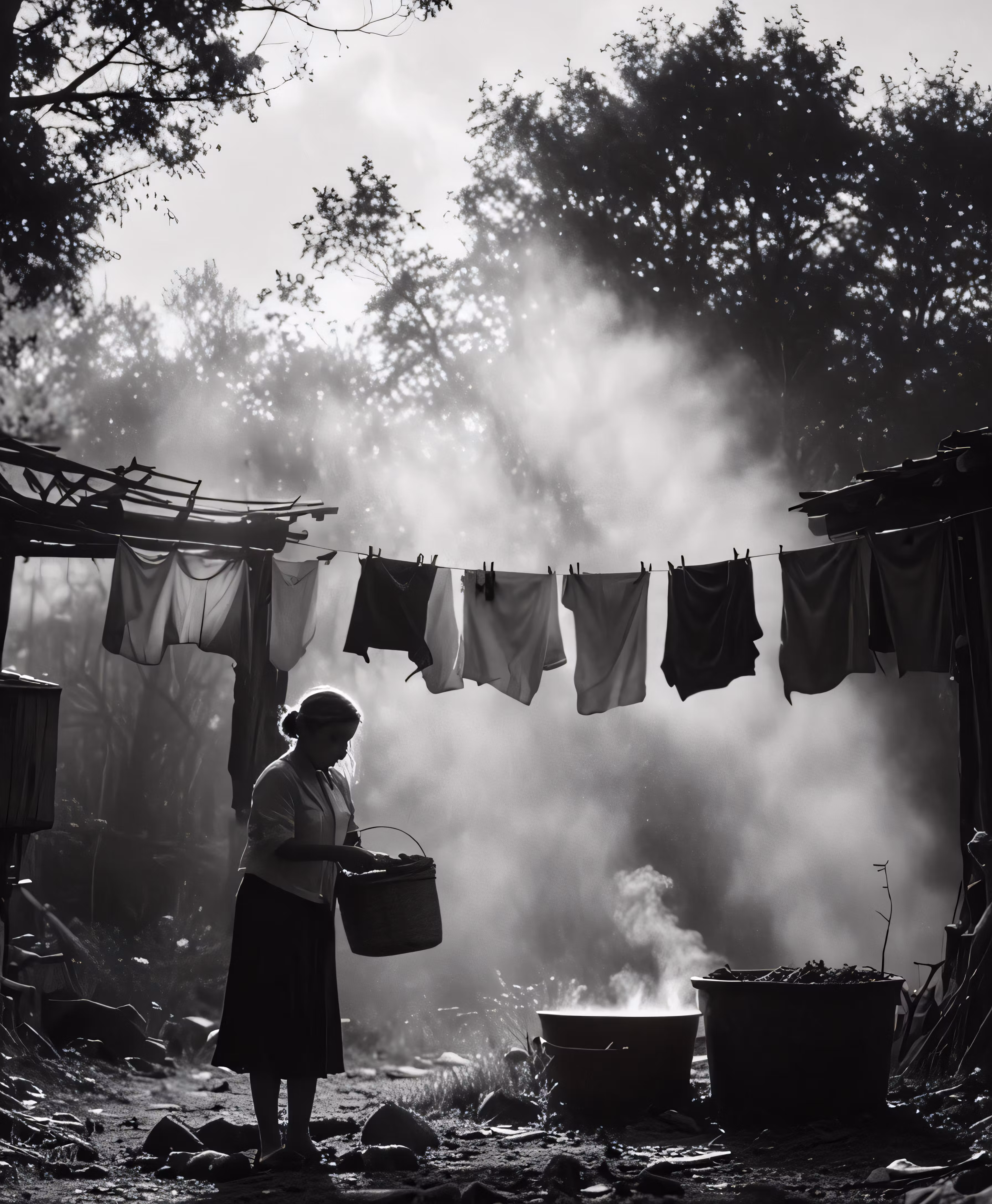 High resolution picture, free to use, the cover to the autumn /a woman wearing a skirt standing outside with laundry lines above her