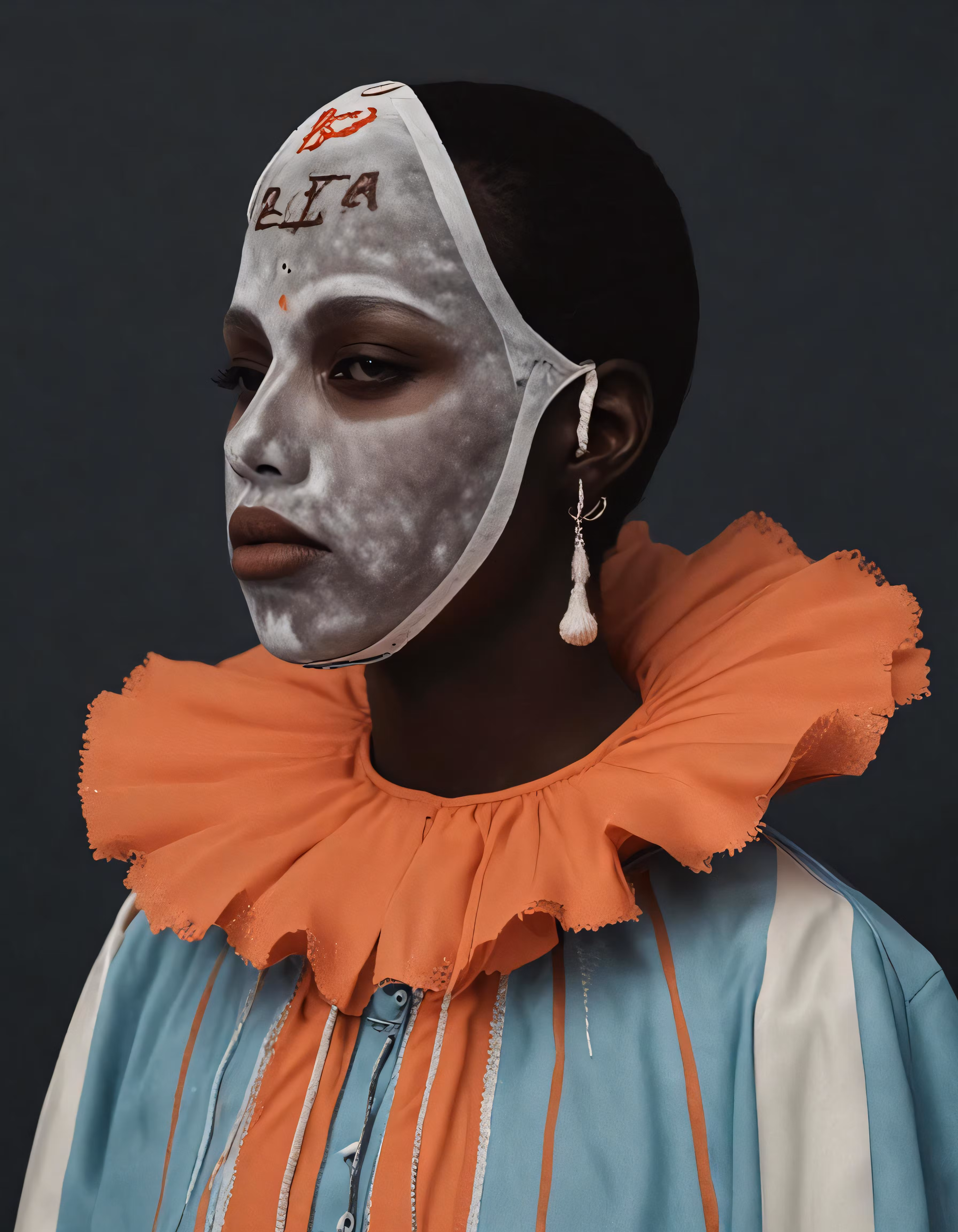 High resolution picture, free to use, the cover to the autumn /a woman with a painted face is wearing a mask