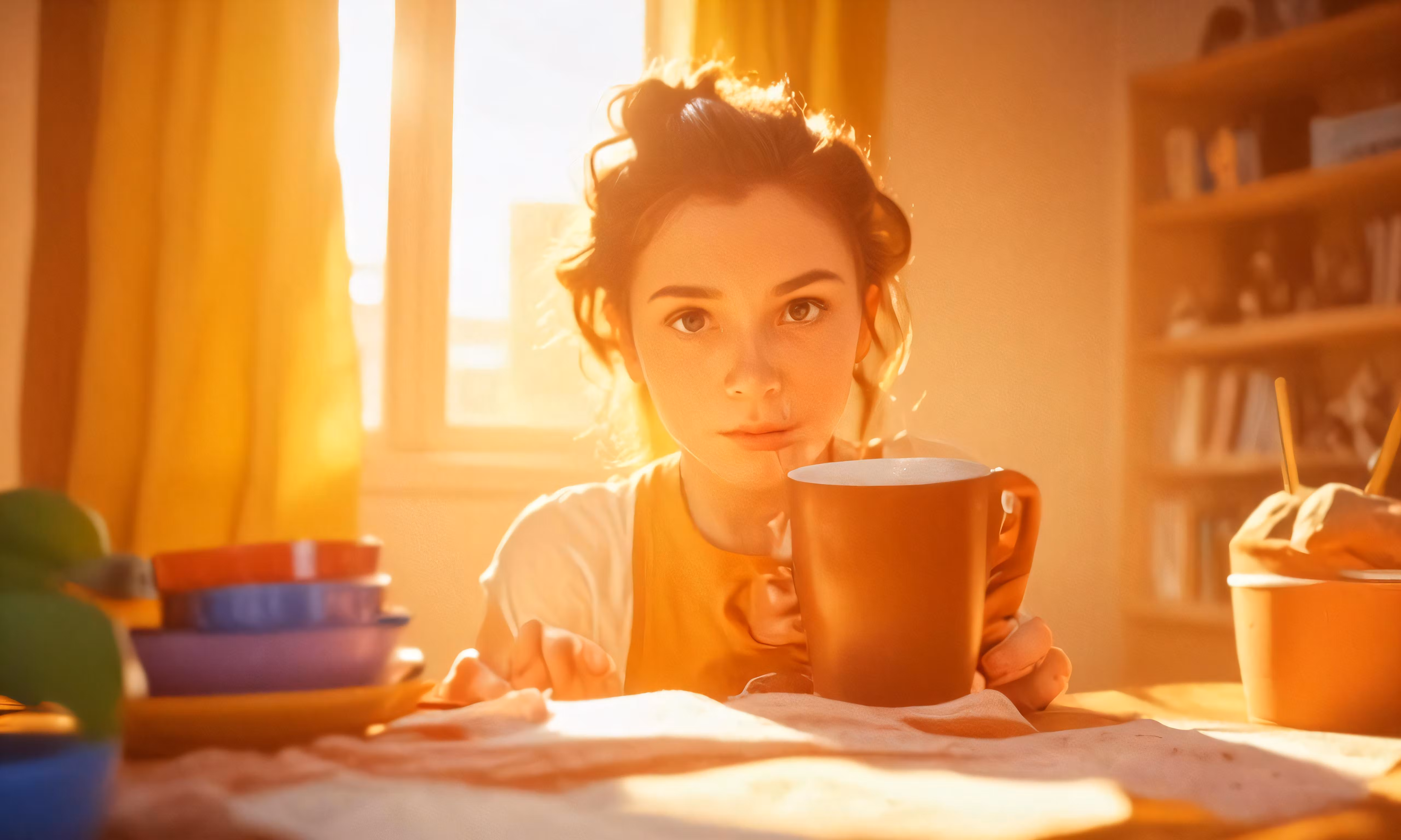High resolution picture, free to use, the cover to the autumn /a young girl is sitting at the table holding a coffee cup
